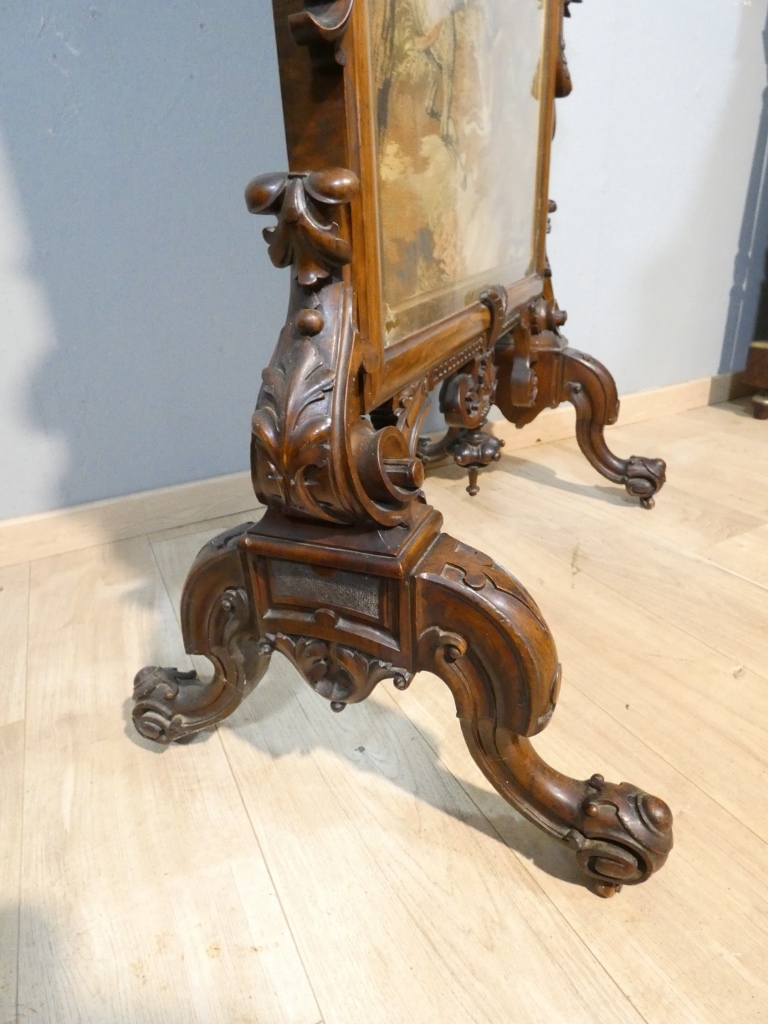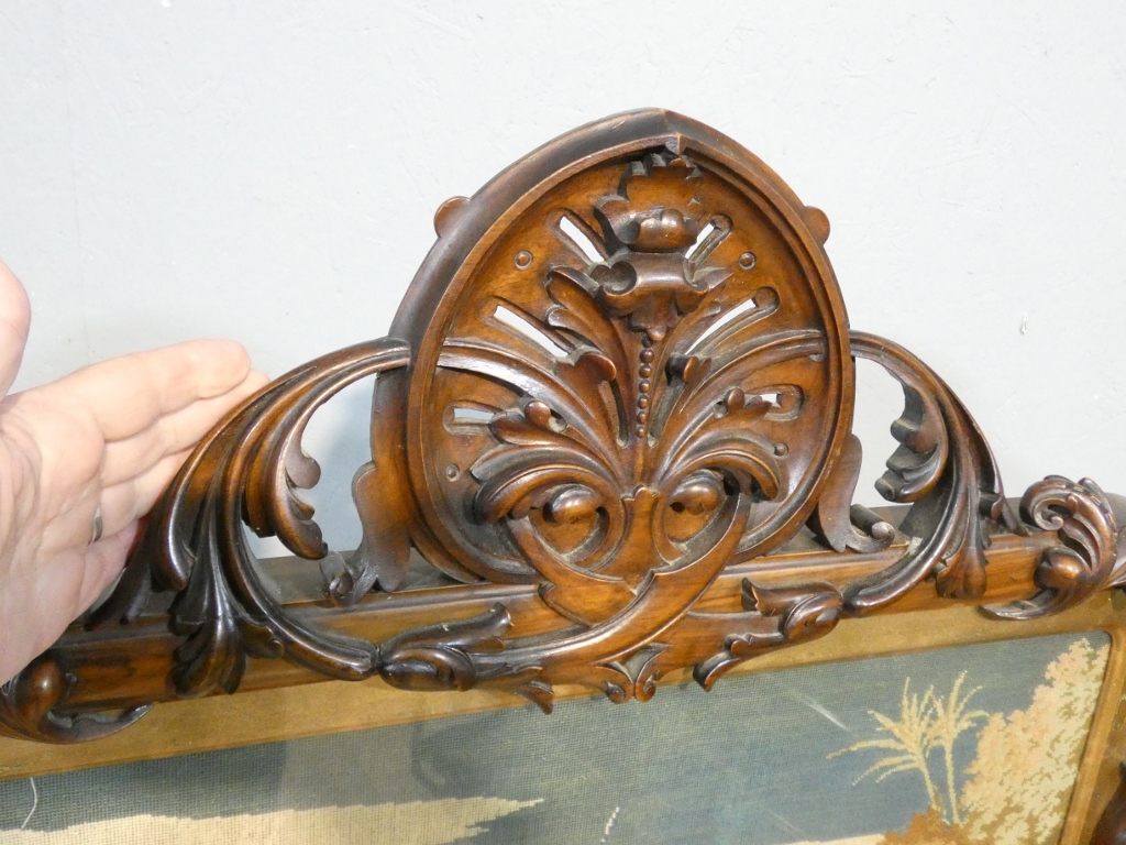Ecran de cheminée façon paravent en palissandre et tapisserie au petit point, époque XIX ème