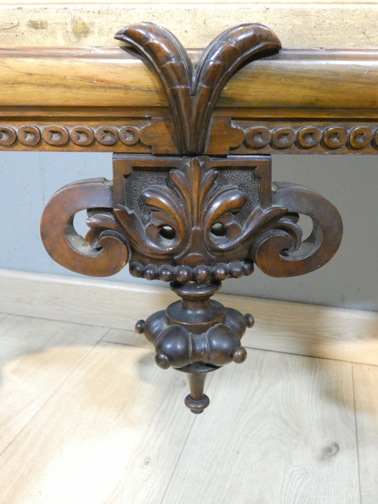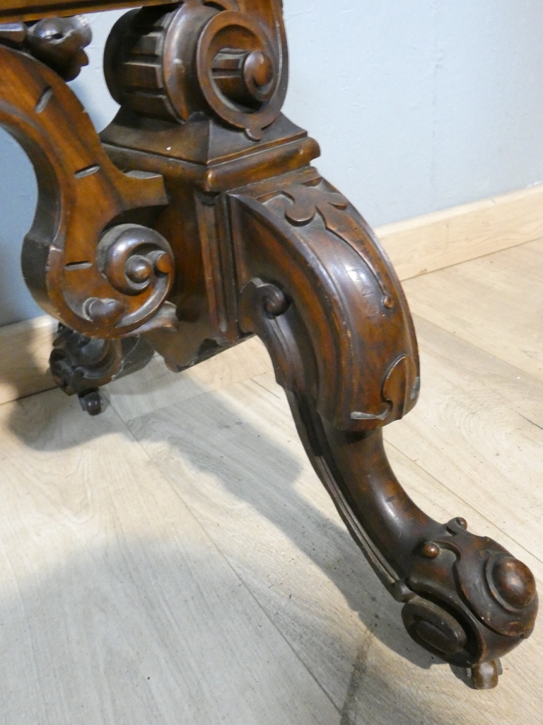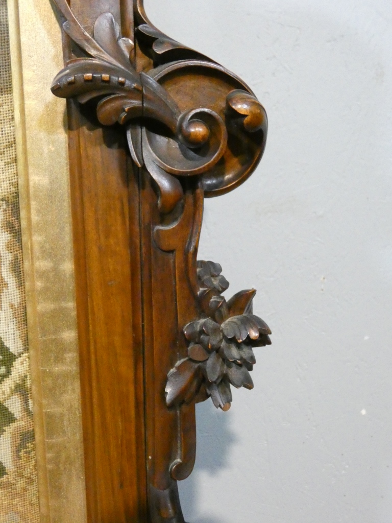 La structure est très richement sculptée dans la masse avec une profusion de décors, palmettes, enroulements, feuilles d’acanthe, fleurs…