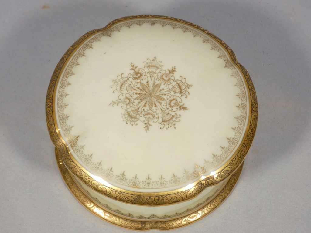 Boîte coffret à bijoux en porcelaine de Limoges, décor or, époque milieu XX ème