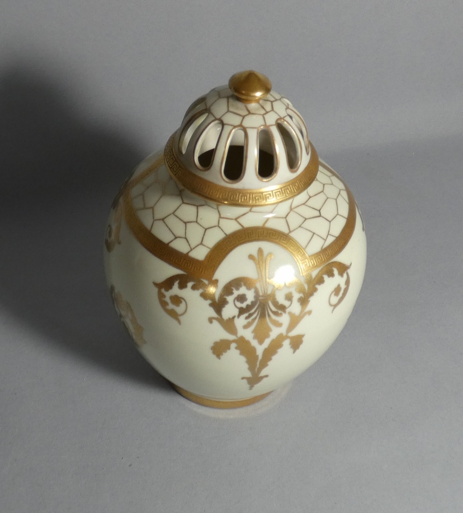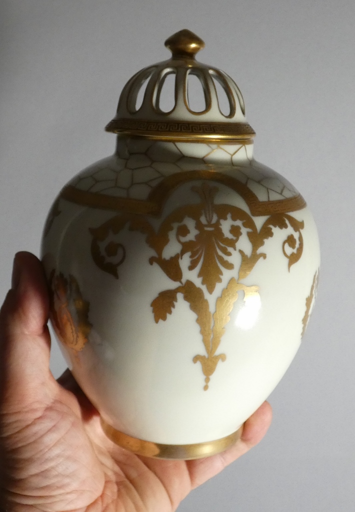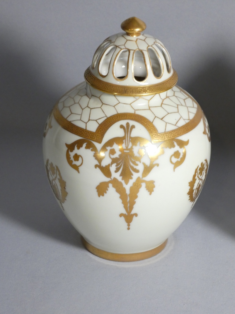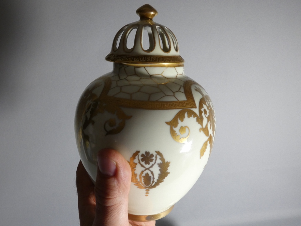 Paire de pots pourris ou brûle parfum en porcelaine de Limoges blanche et or, époque début XX è