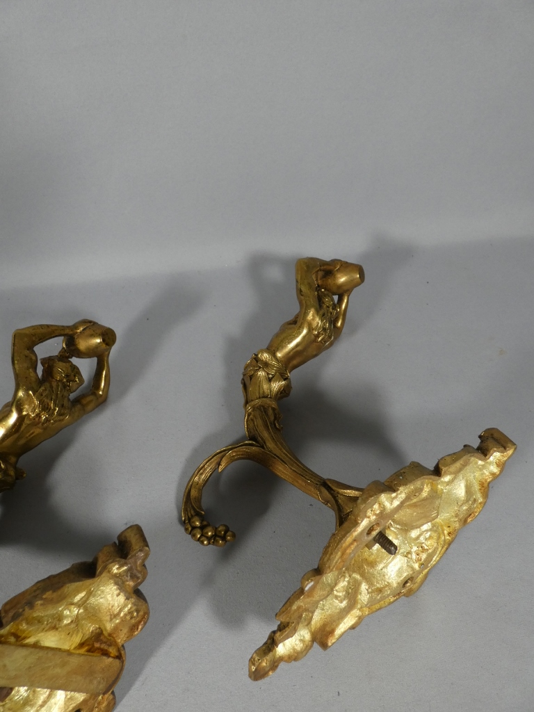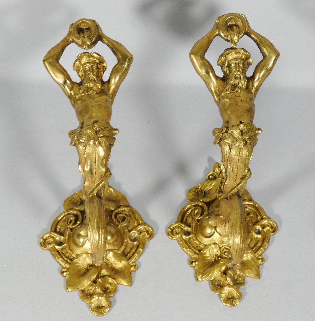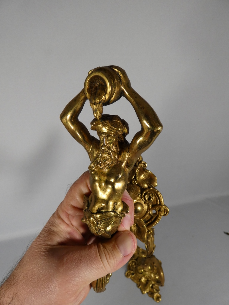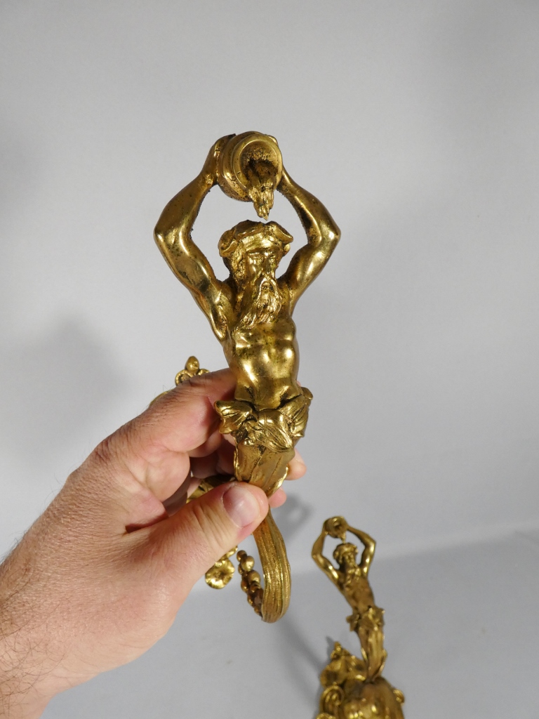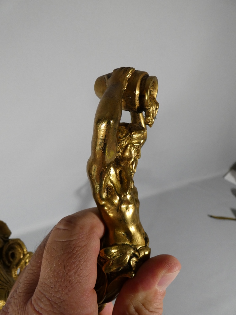 Paire de porte embrasses de rideaux aux hommes à la cruche, bronze doré XIX ème