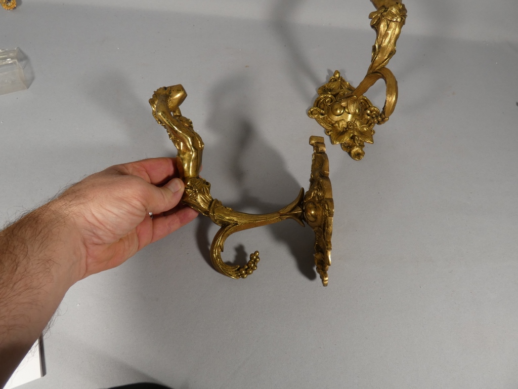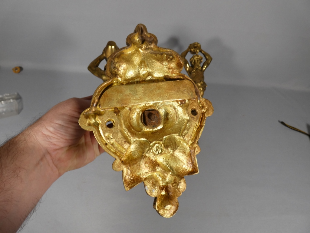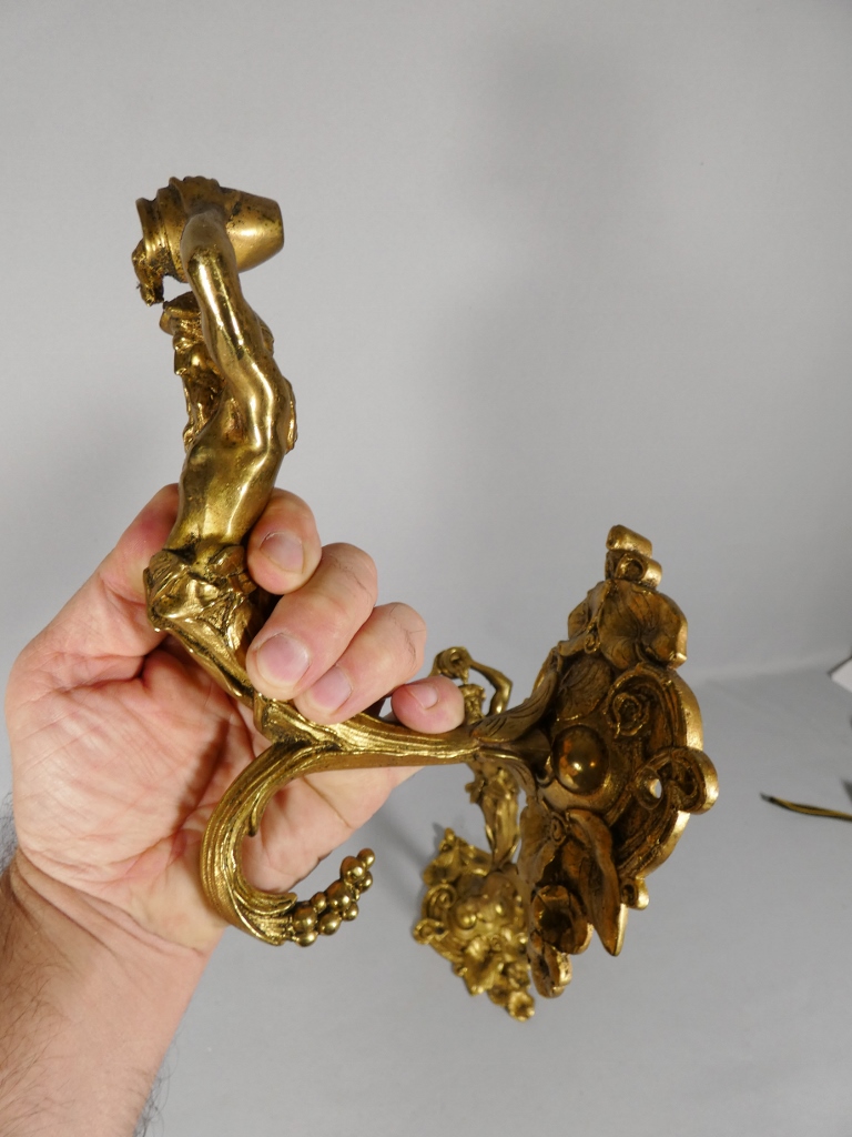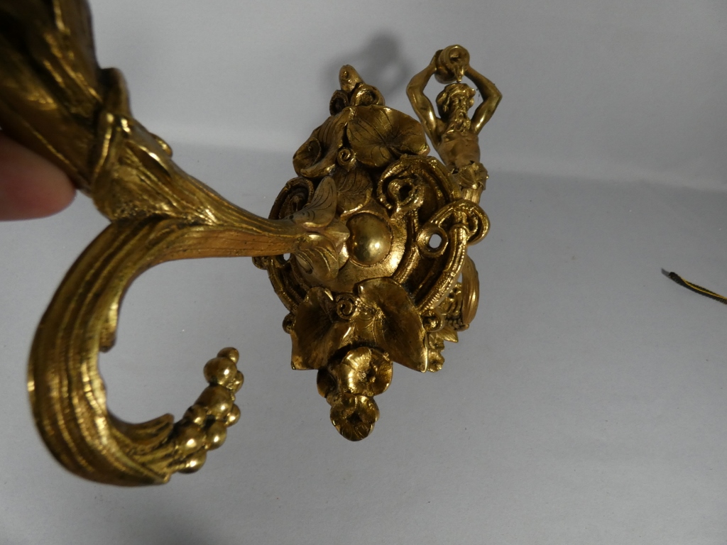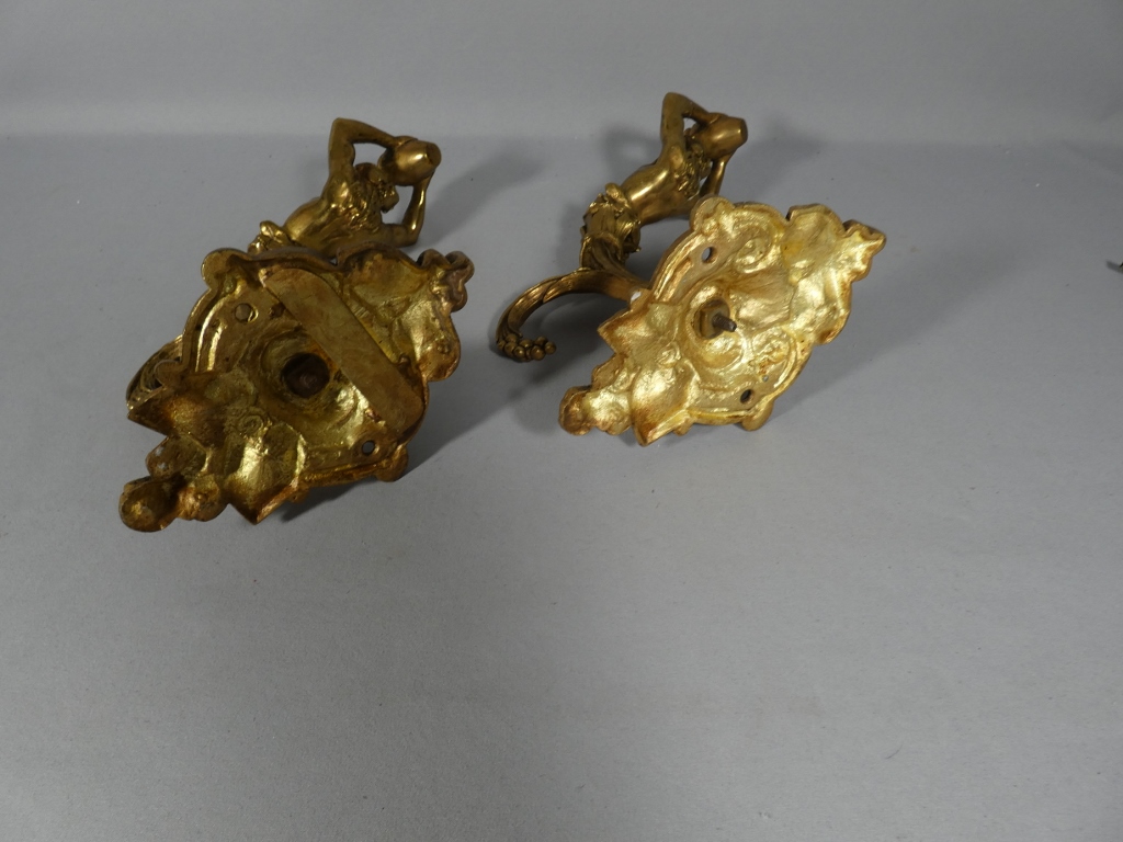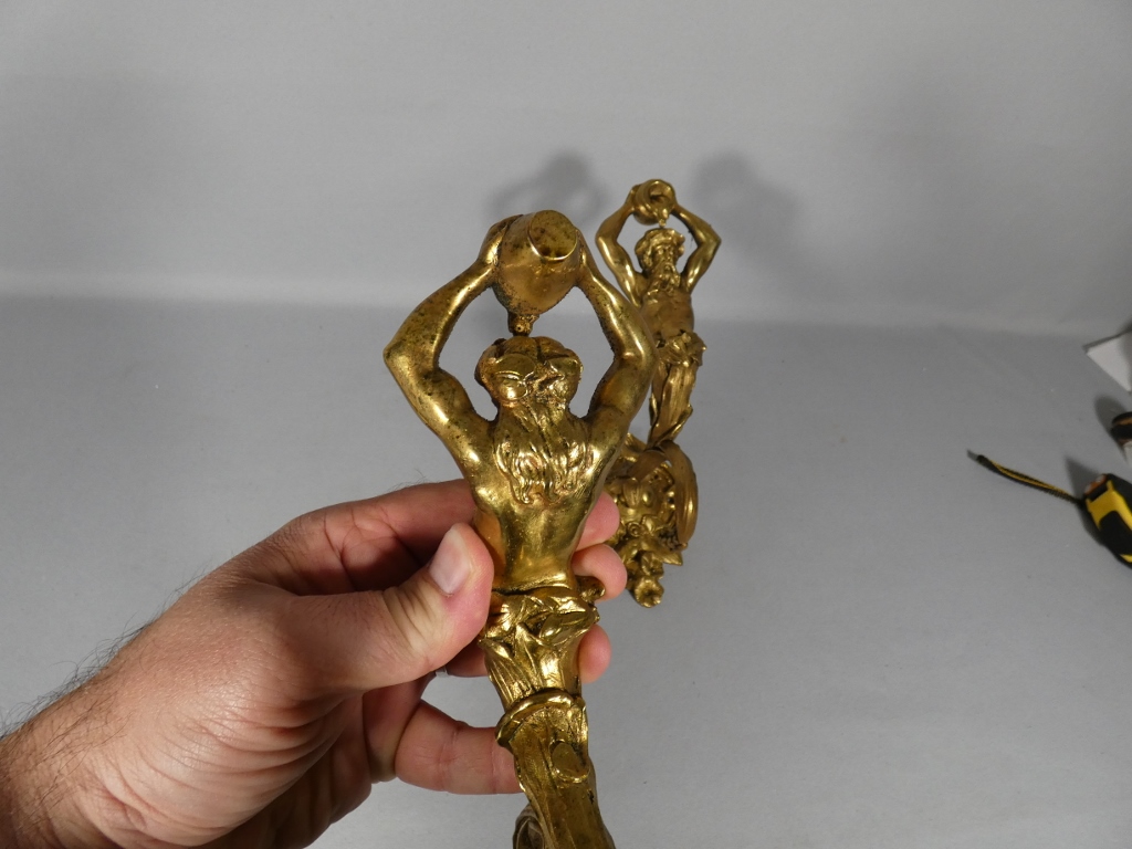 Paire de porte embrasses de rideaux aux hommes à la cruche, bronze doré XIX ème