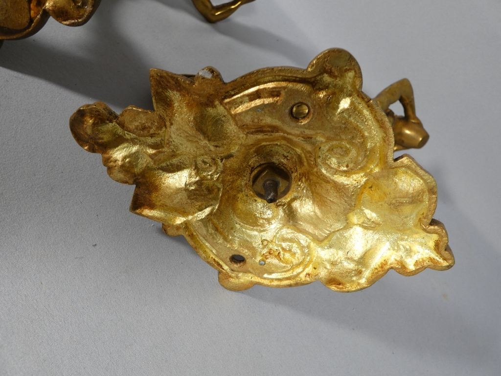 Paire de porte embrasses de rideaux en bronze doré.