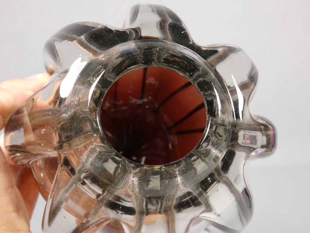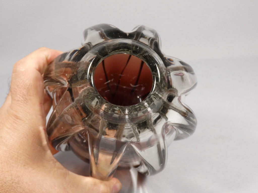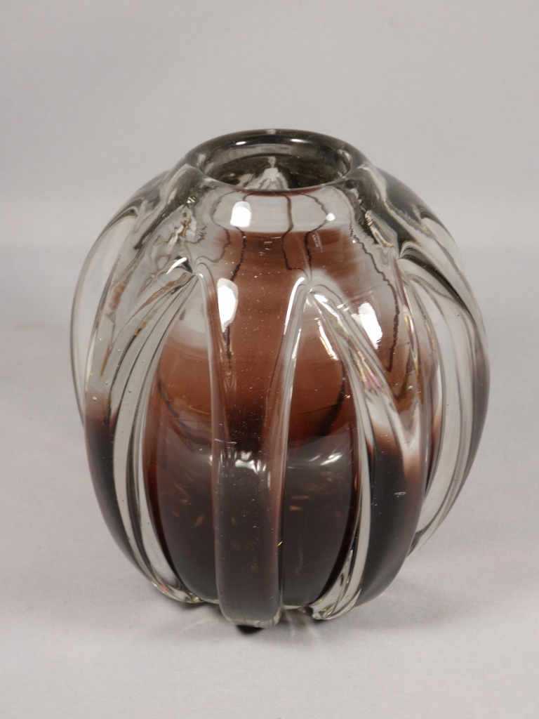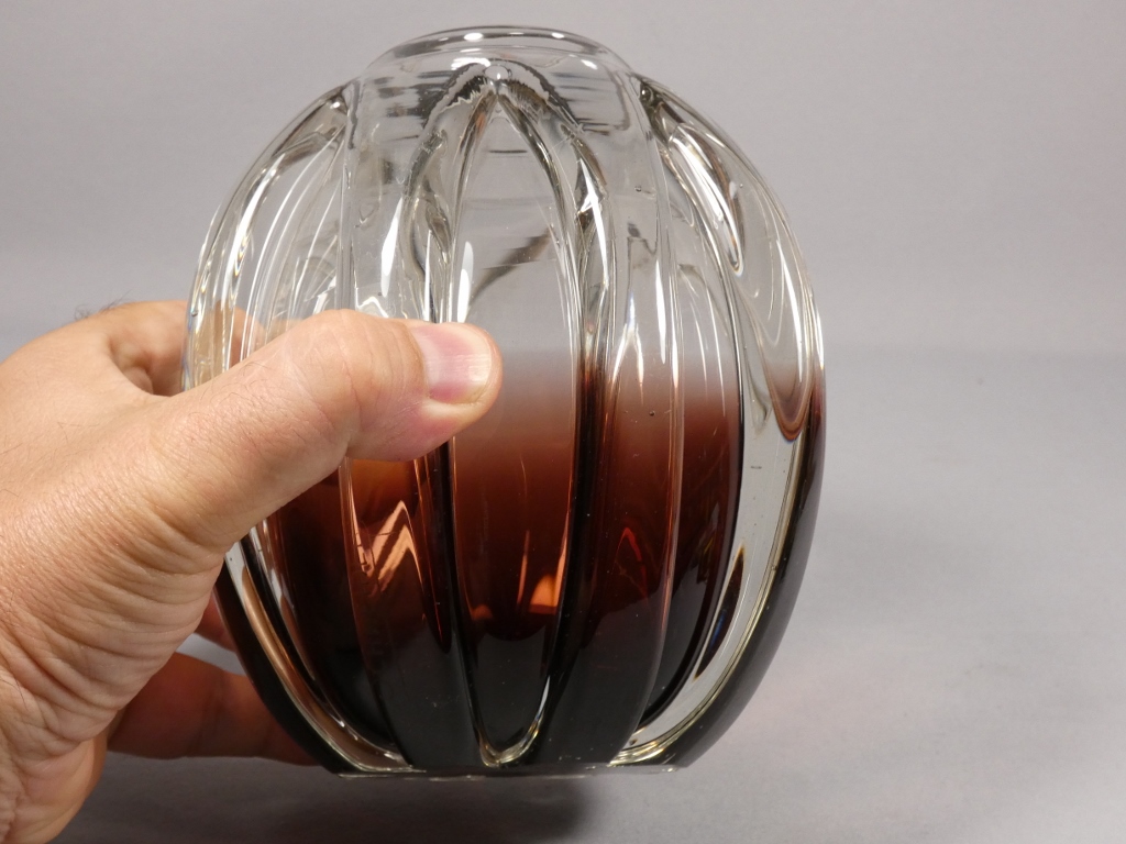Charles Schneider, vase en verre à côtes en relief double couleur, époque 1930