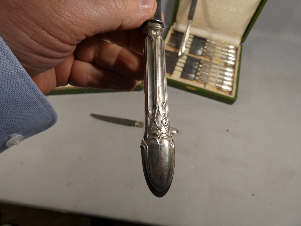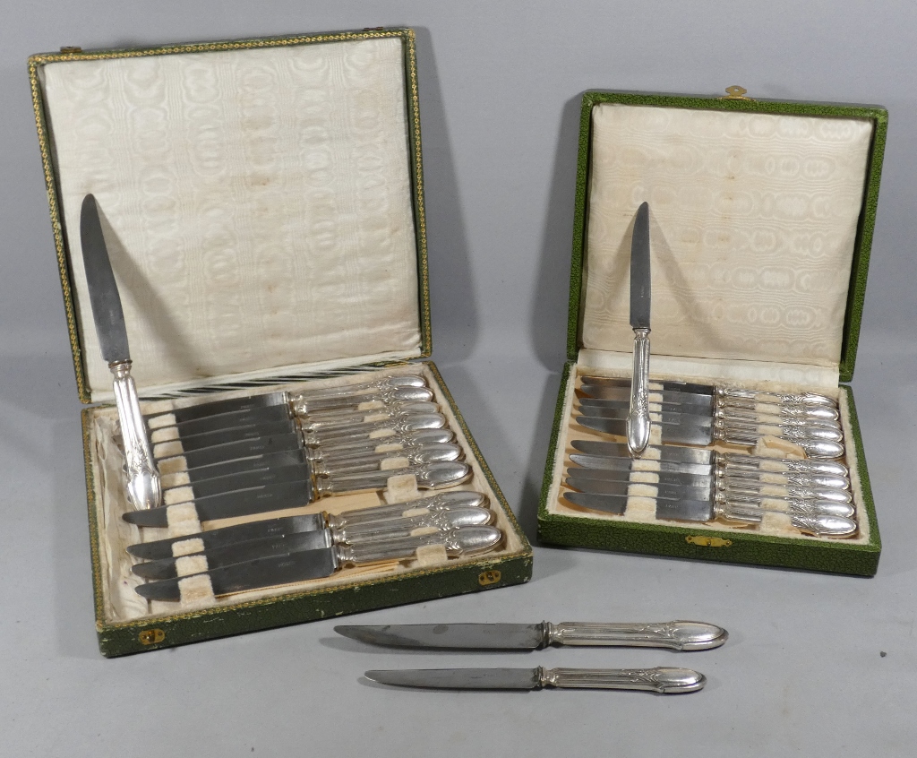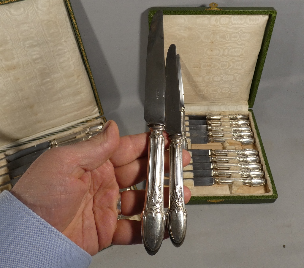 Rare ensemble de 24 couteaux d’époque Art Nouveau en argent massif.