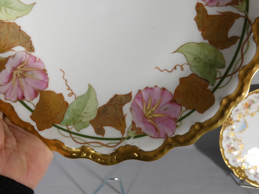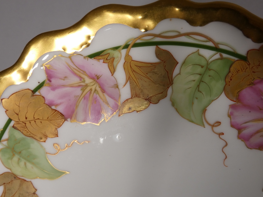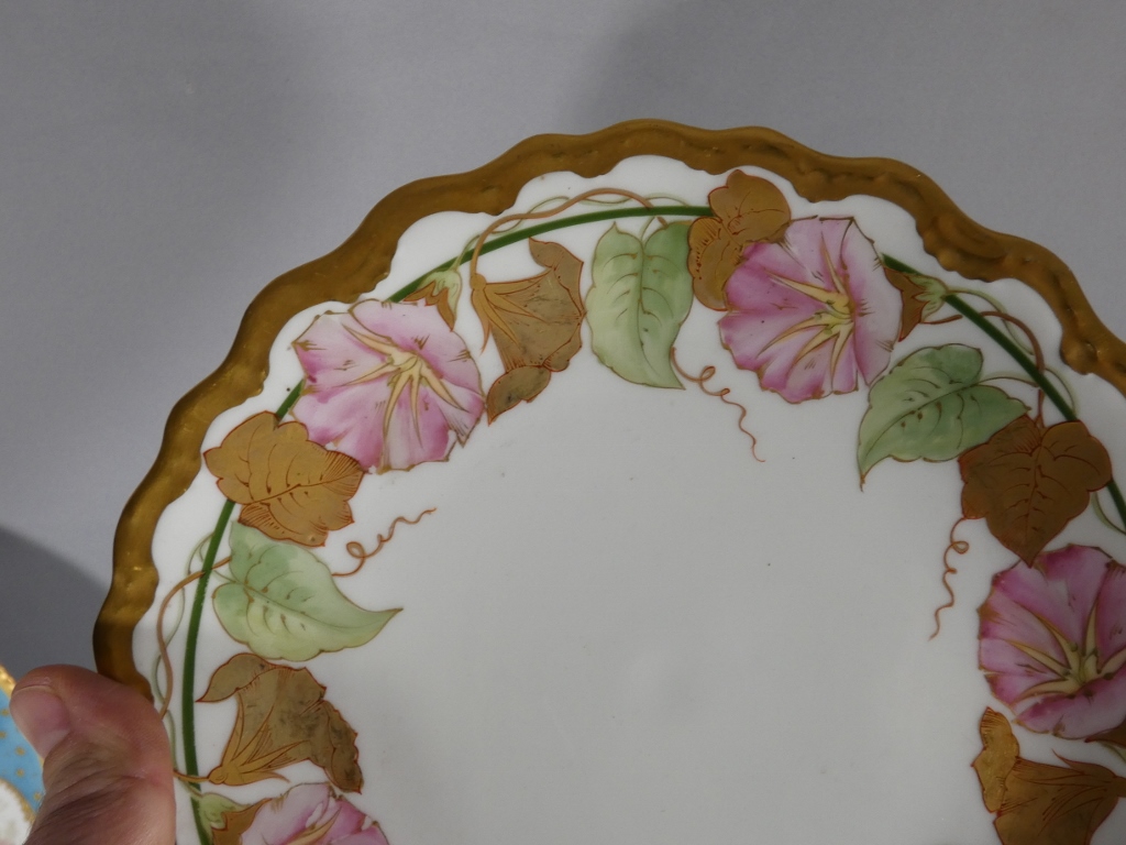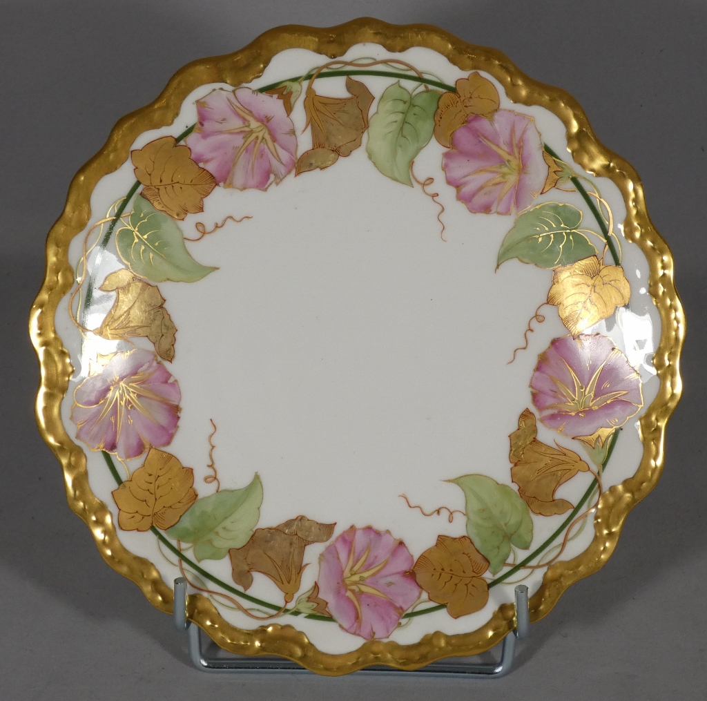 Assiette de collection en porcelaine de Limoges, décor peint à la main aux ipomées