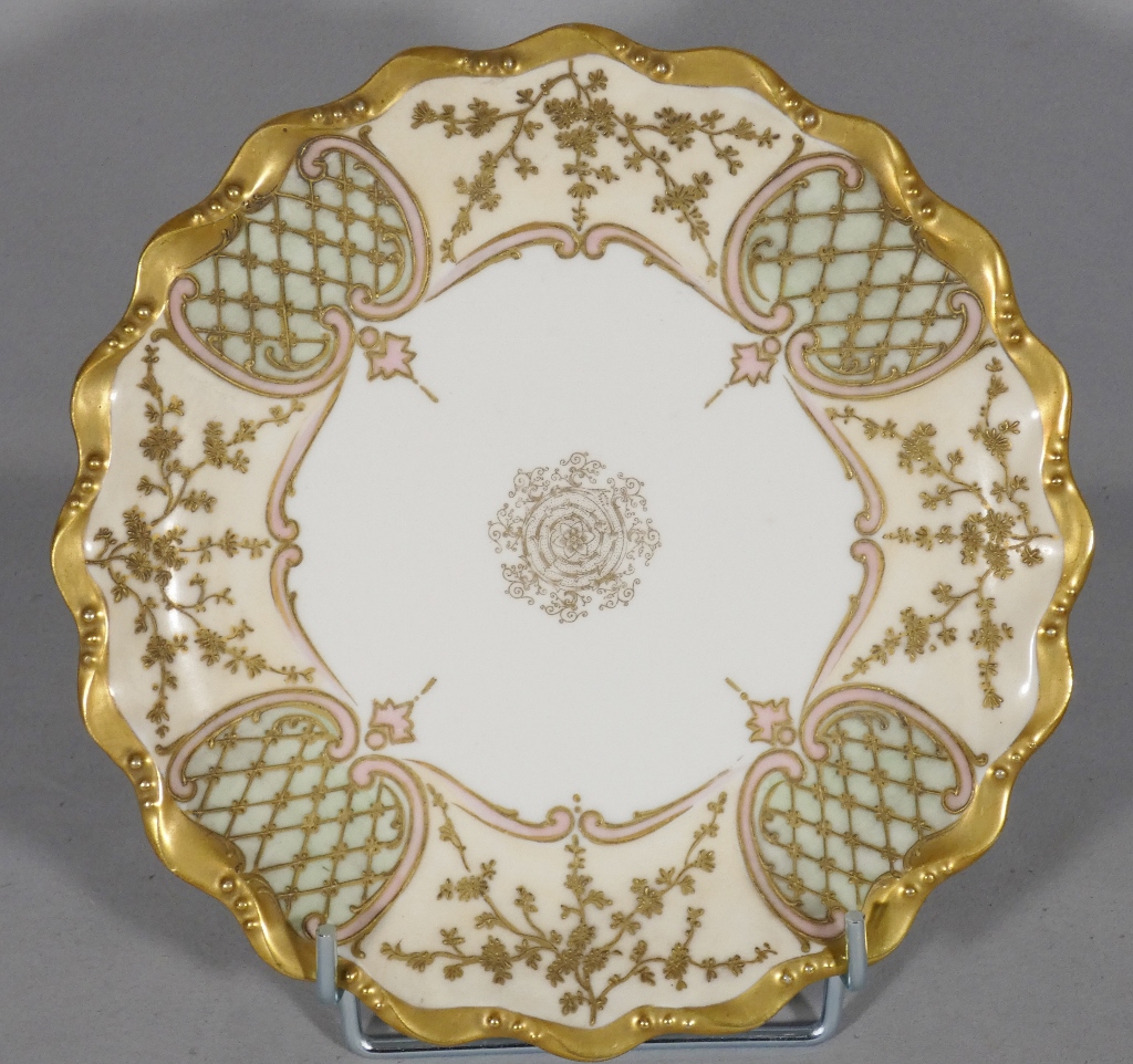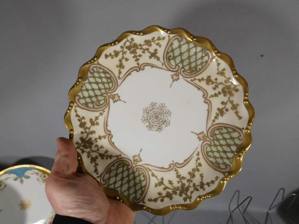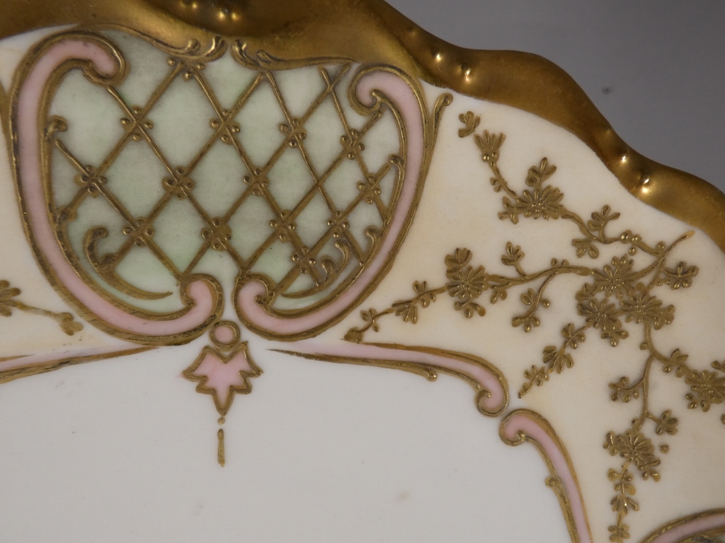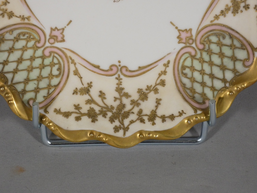 Assiette de collection en porcelaine de Limoges, décor peint à la main quadrillage