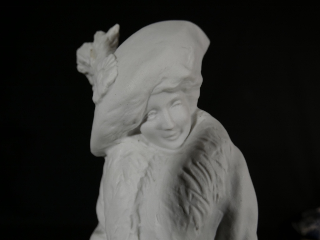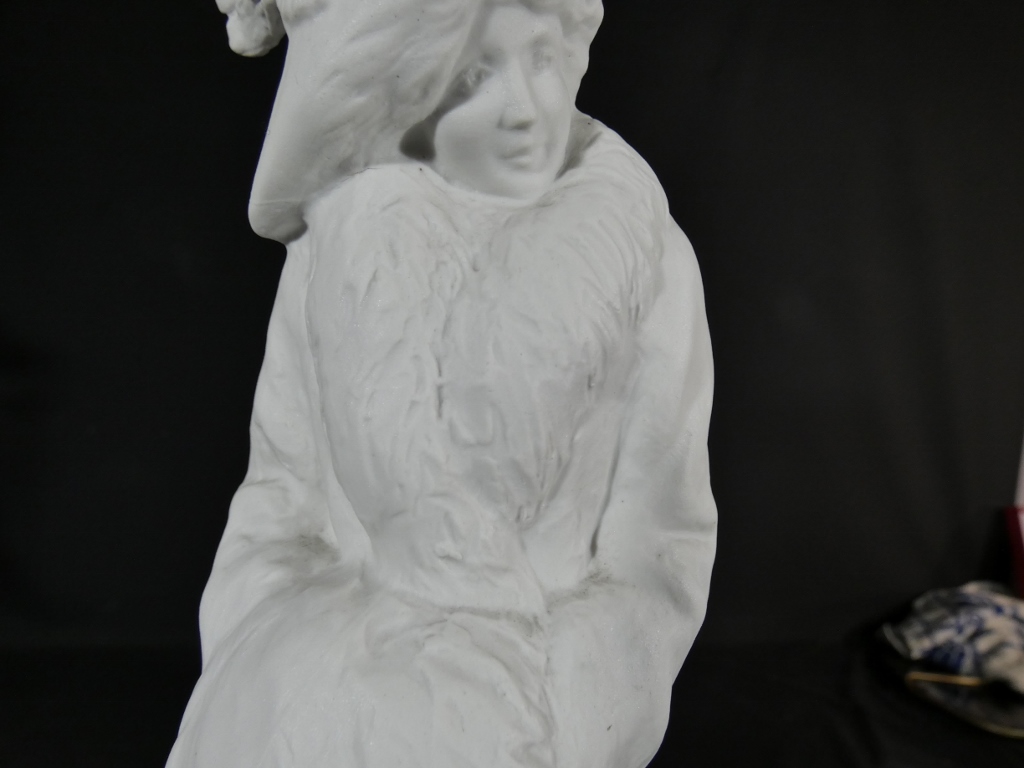 Élégante à la fourrure, sculpture en biscuit par Maurice Guiraud-Rivière, époque Art Nouveau