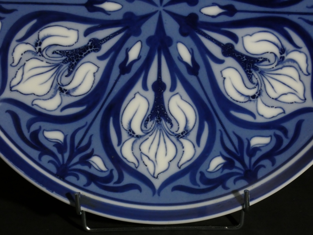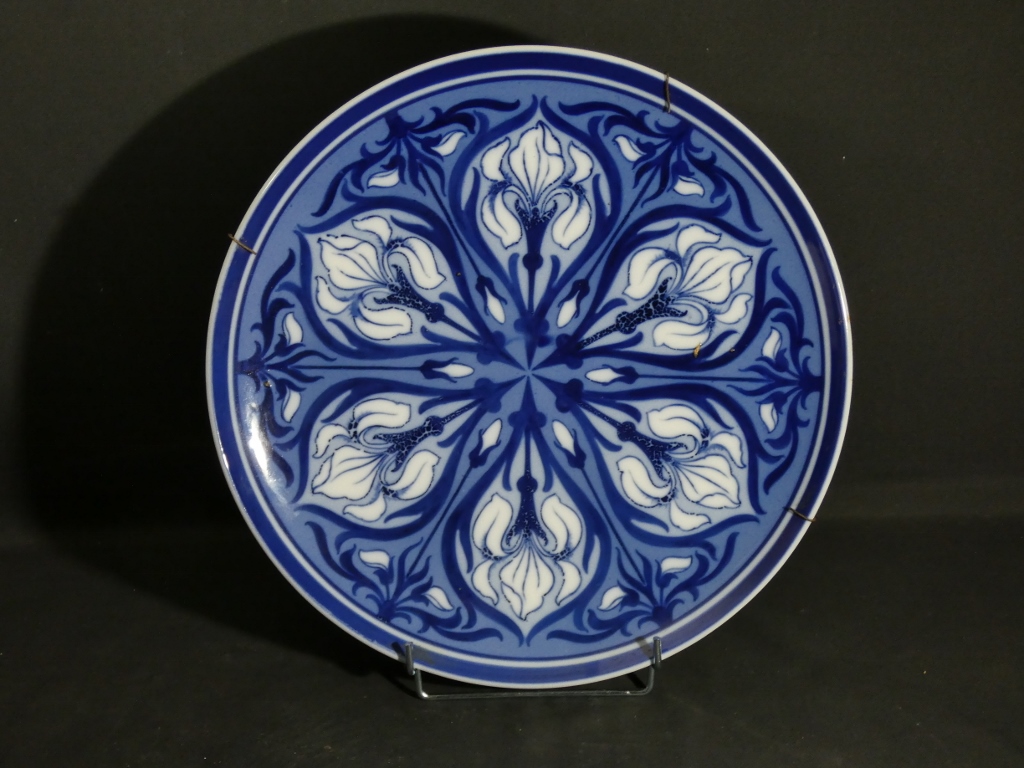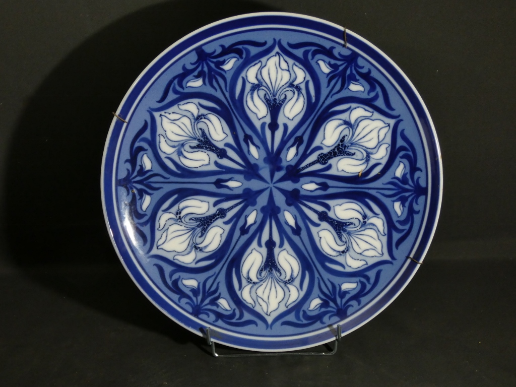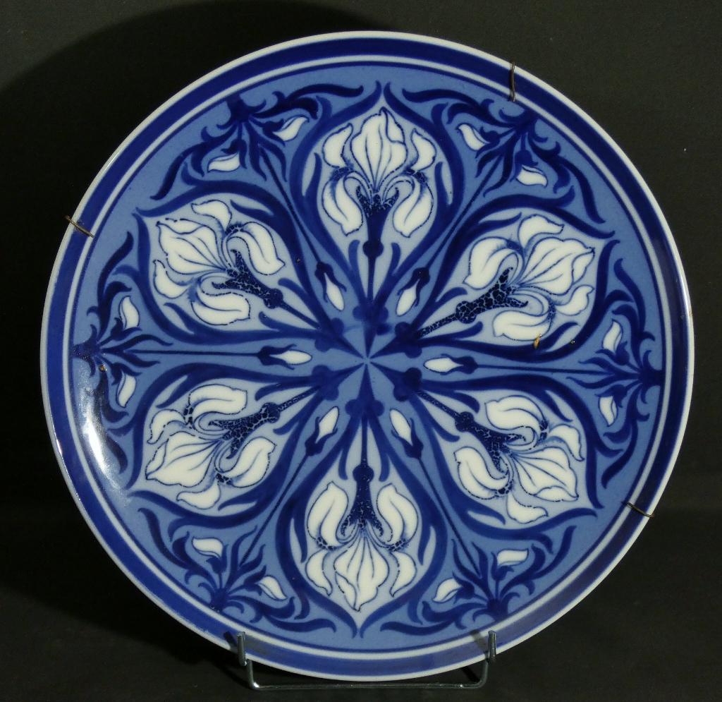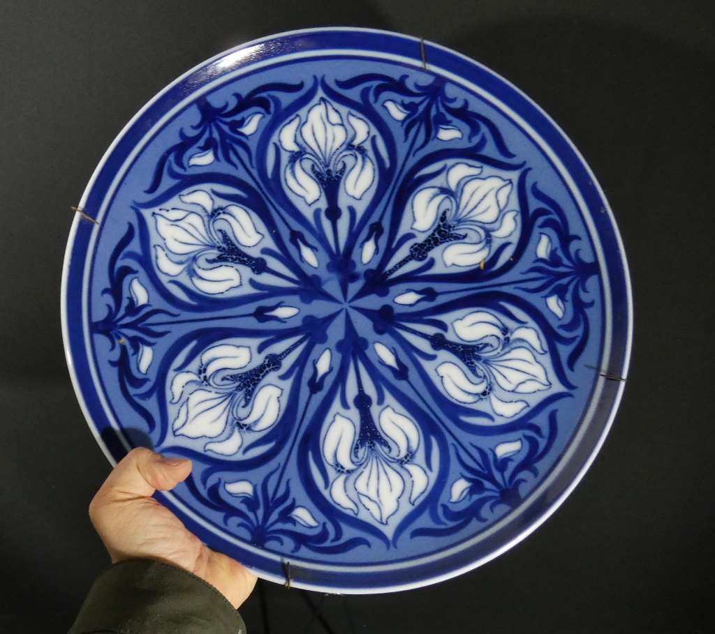ENAD Limoges, Baptiste Cluzelaud, grand plat aux iris en porcelaine Art Nouveau