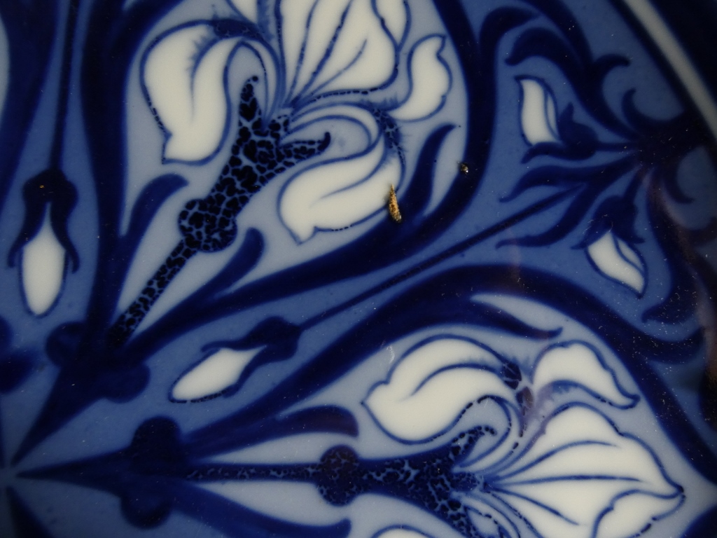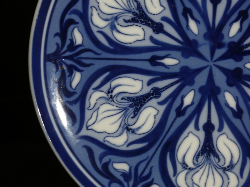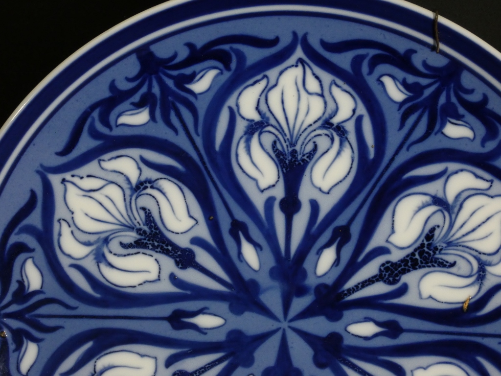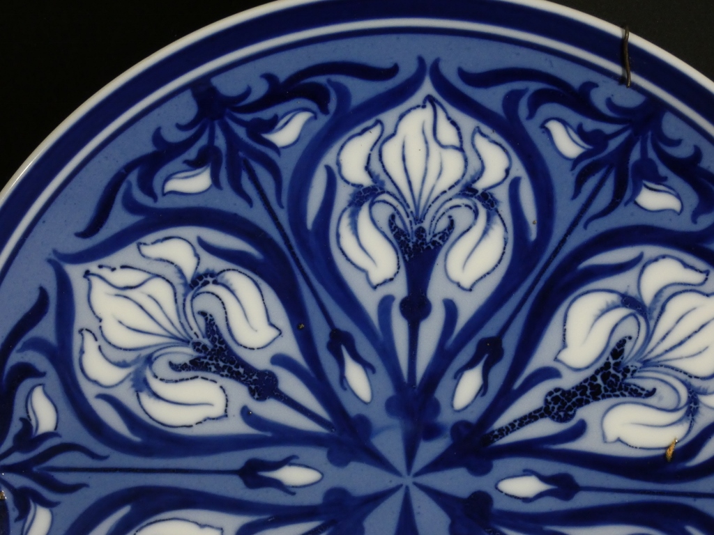 Il s’agit d’un plat peint à la main et cuit en grand feu par Baptiste Cluzelaud, peintre céramiste de l’association « La Fleur » de l’ENAD (Ecole Nationale des Arts Décoratifs) de Limoges.