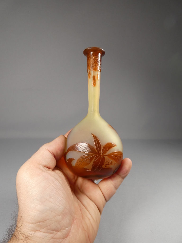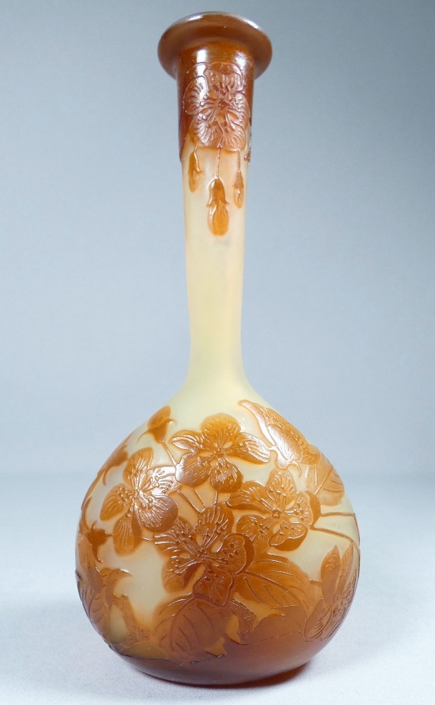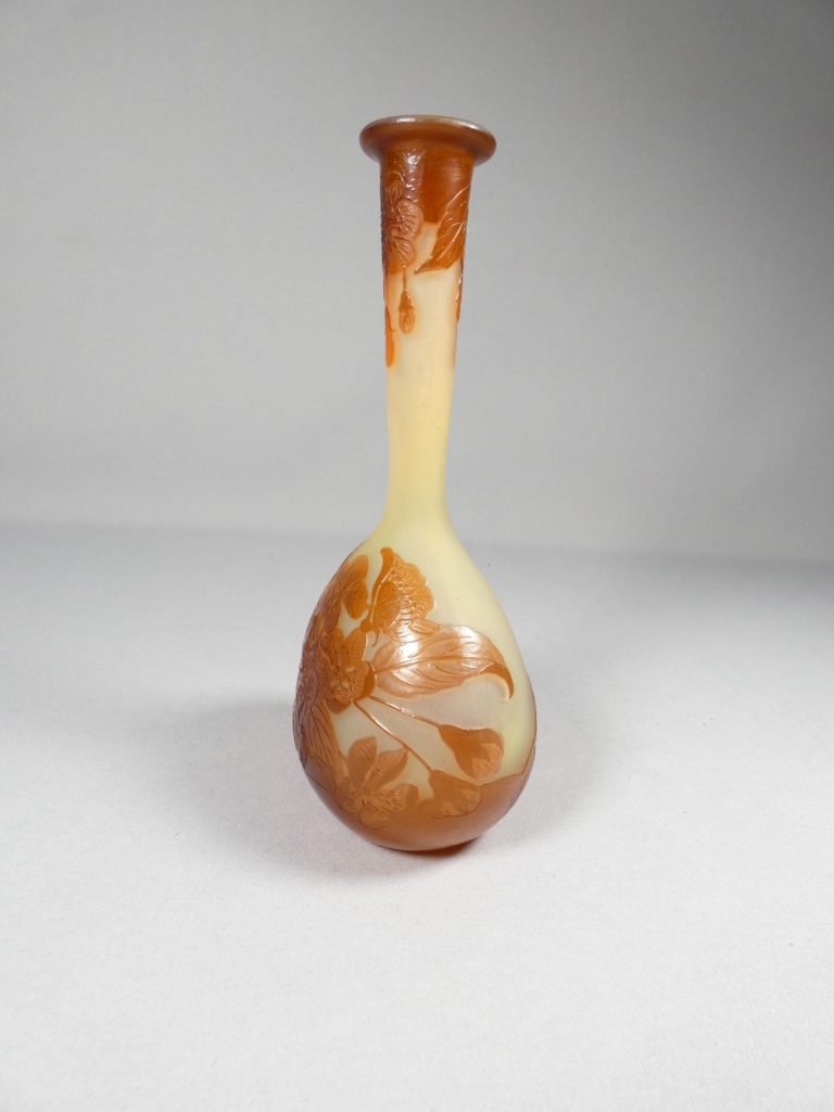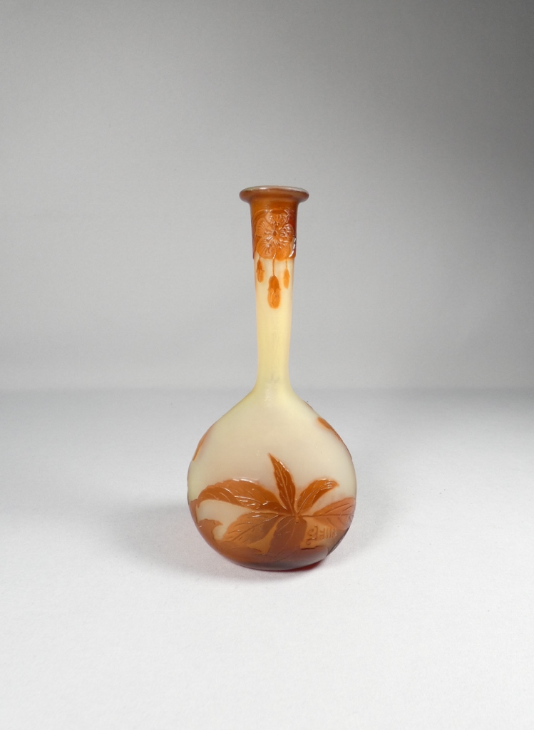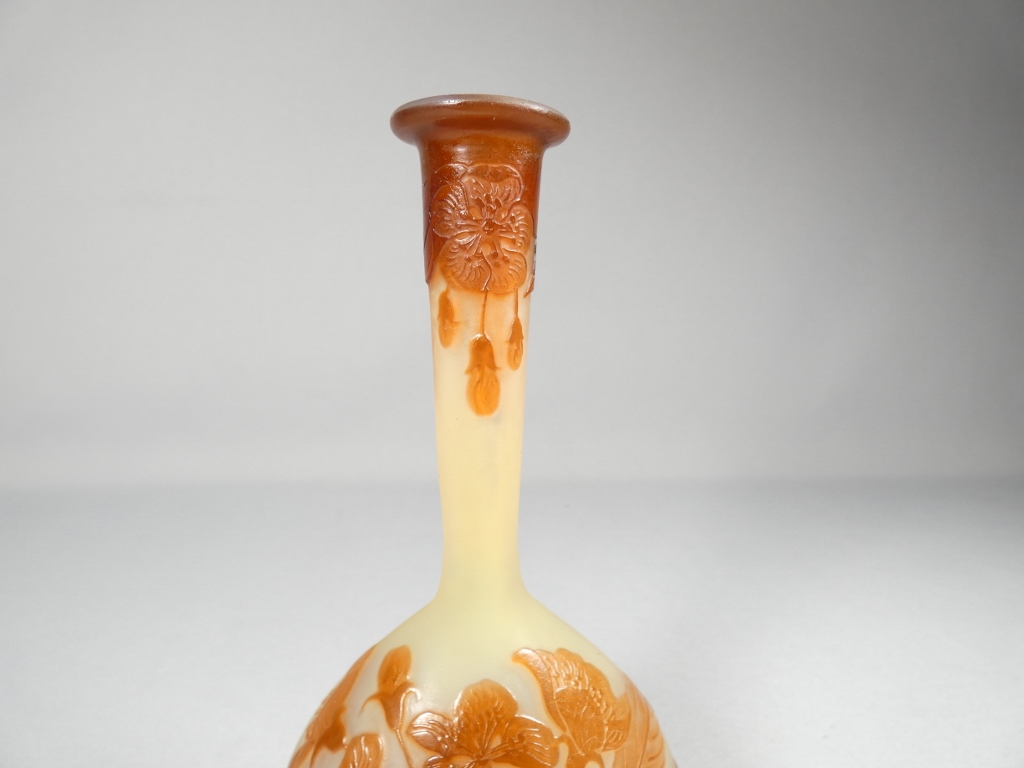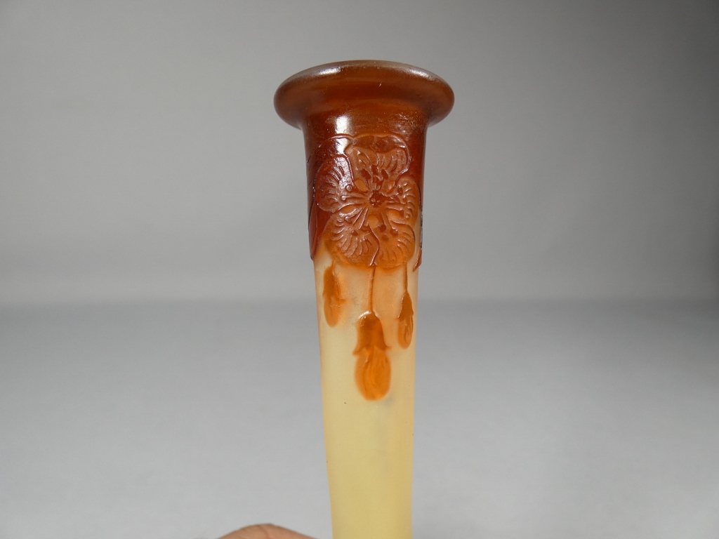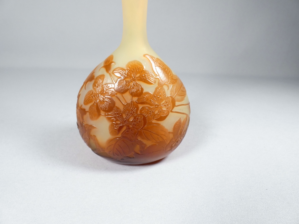 Gallé, vase en verre double couche dégagé à l’acide, décor de fleurs orangé