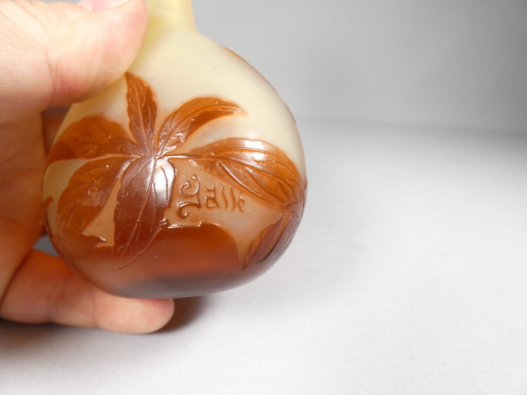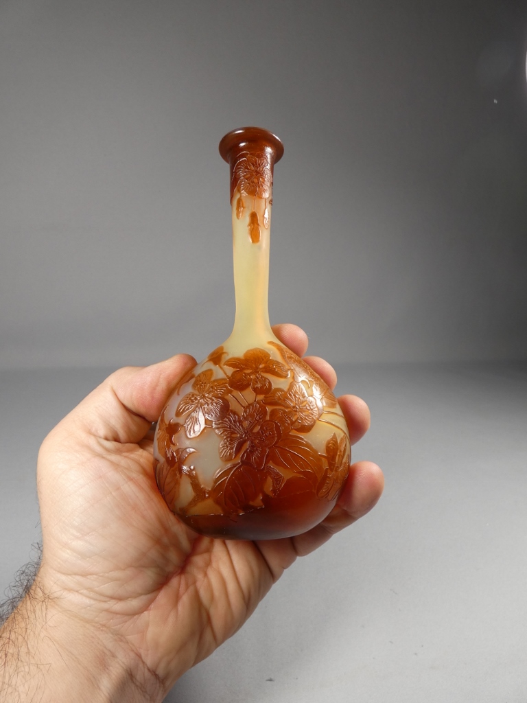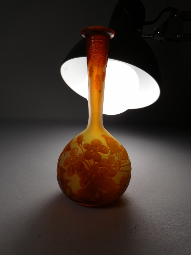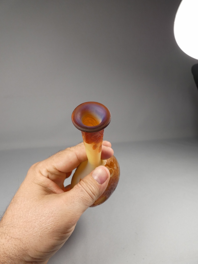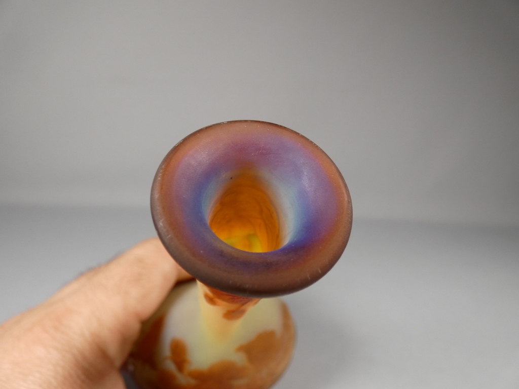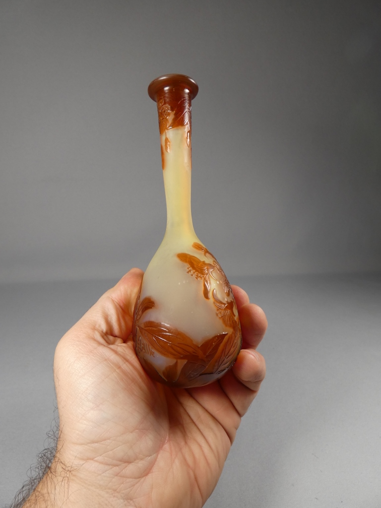 Gallé, vase en verre double couche dégagé à l’acide, décor de fleurs orangé