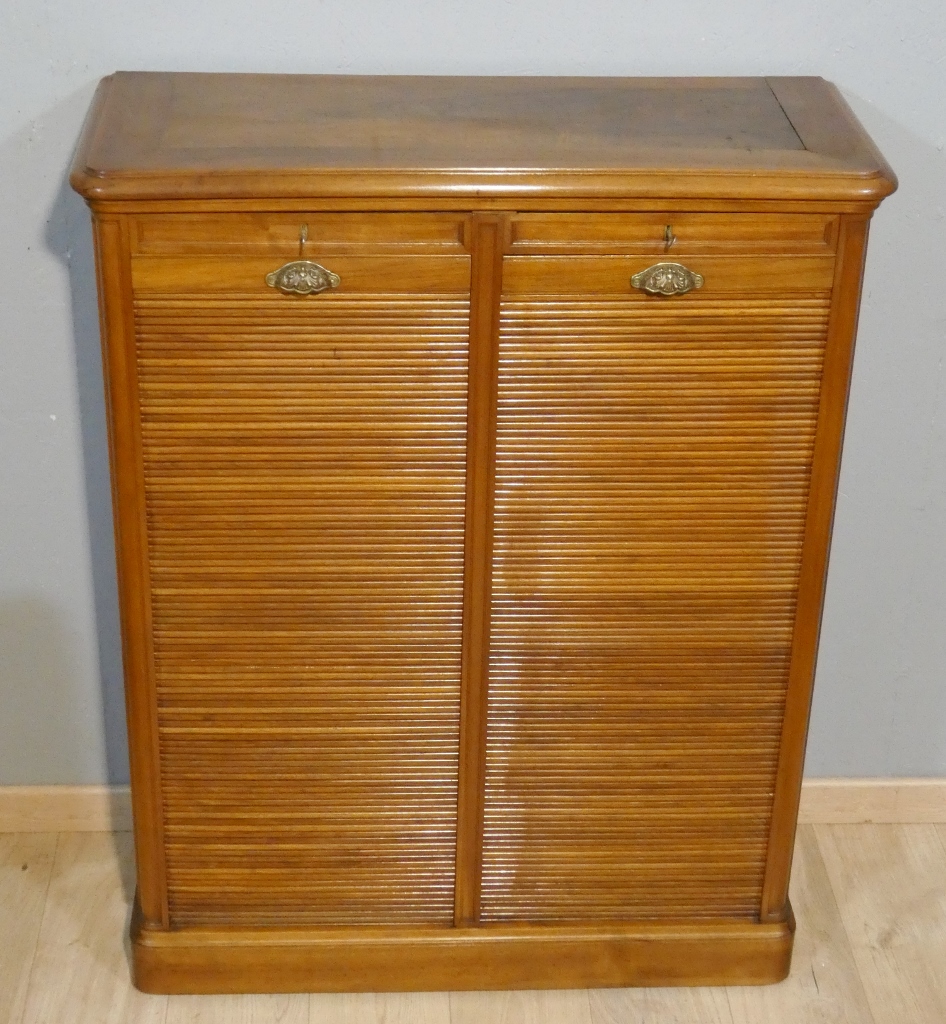 G Lancelin, place des Vosges, Paris, meuble de métier, classeur à volets en noyer, daté 1914