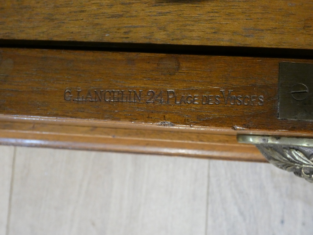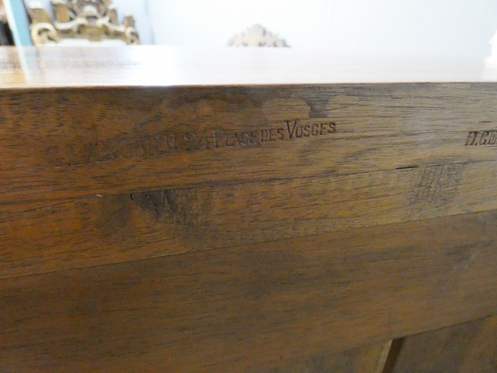 Estampille G Lencelin, ébéniste au 24 place des Vosges à Paris, et une date à l’arrière mars 1914.