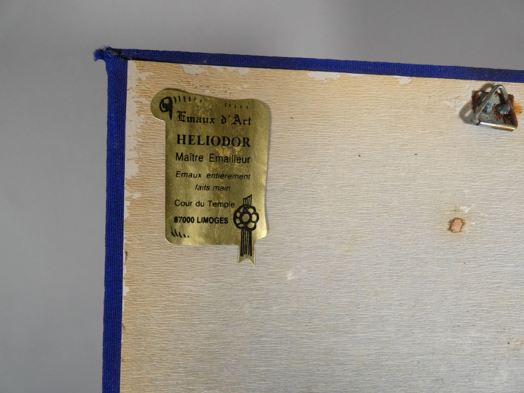 Oeuvre signée Héliodor, artiste émailleur ayant eu une boutique cours du Temple à Limoges.