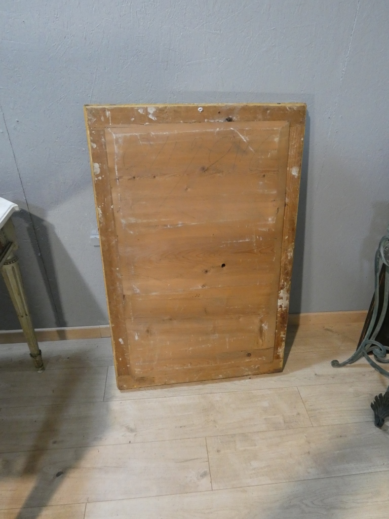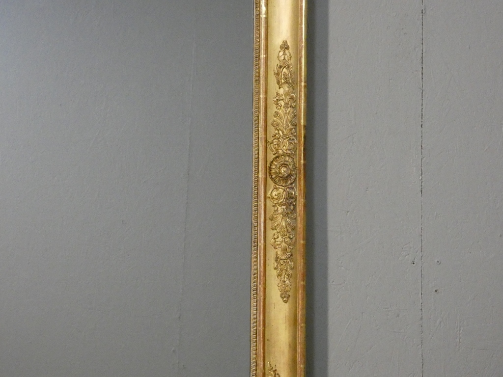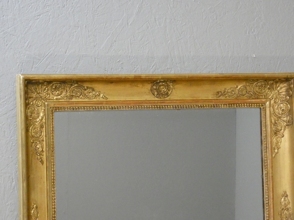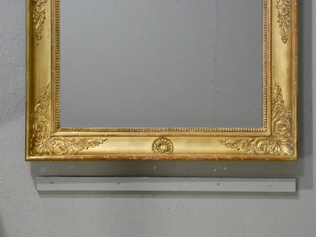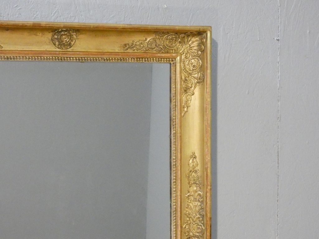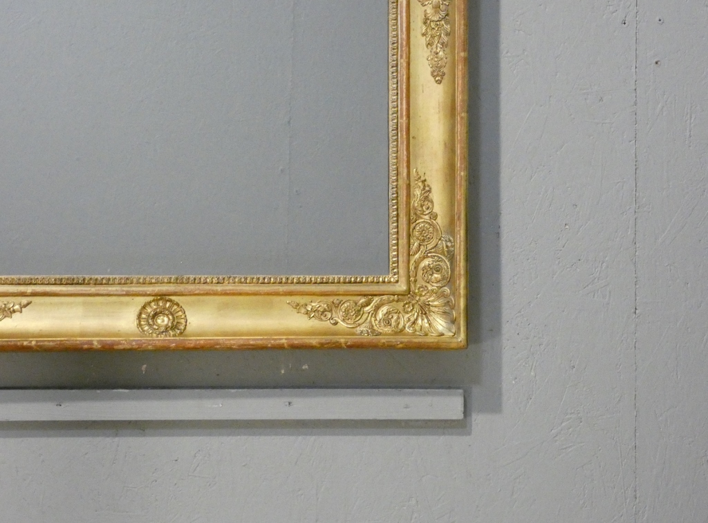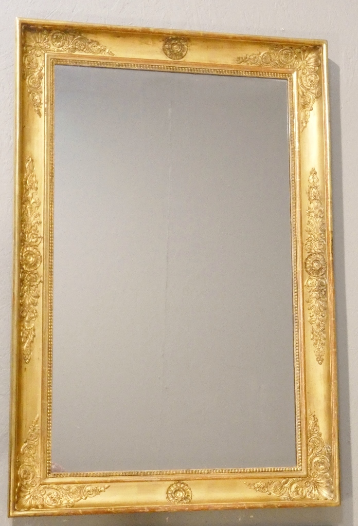Miroir d’époque Empire en bois et stuc doré à la feuille glace au mercure, début XIX ème