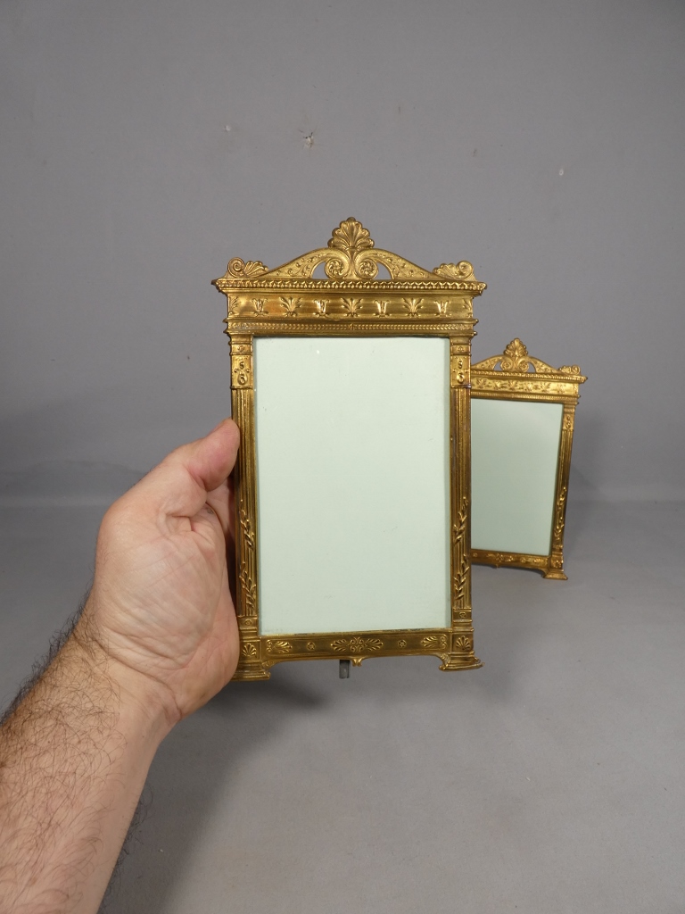 Paire de cadres photos de style Empire en laiton doré, époque 1900