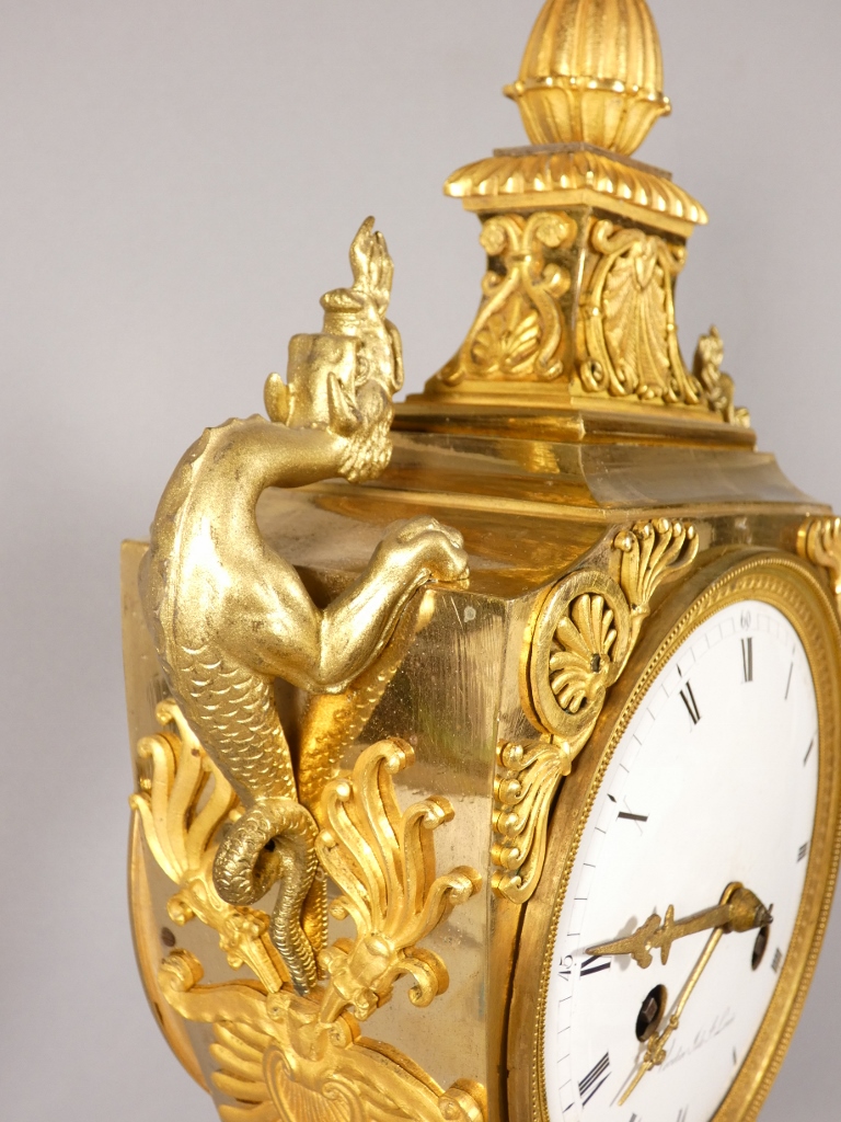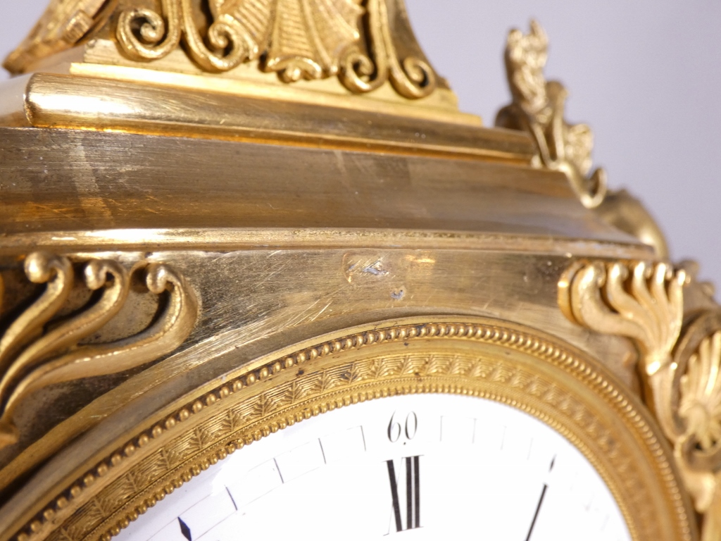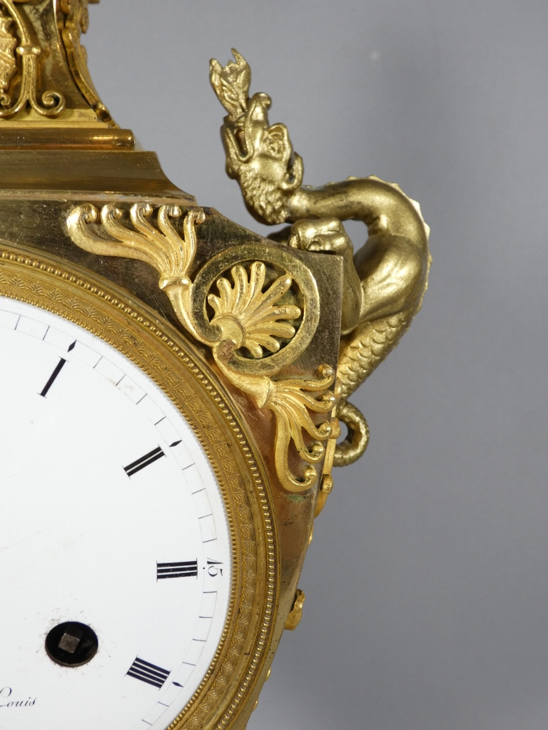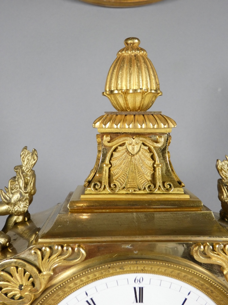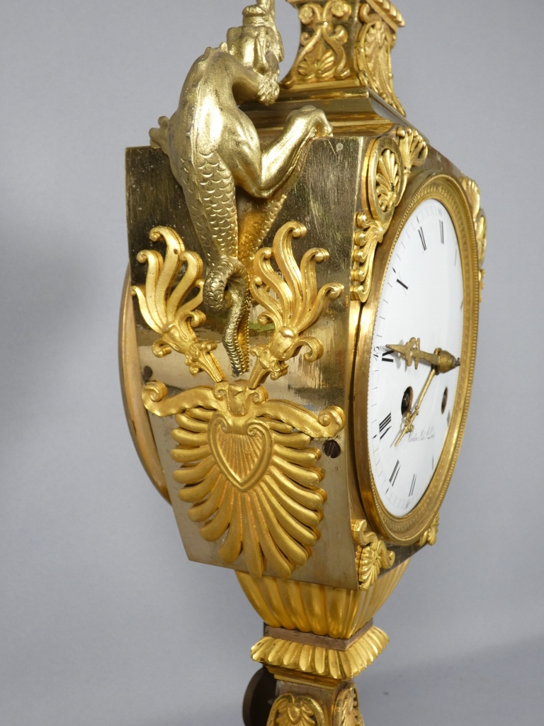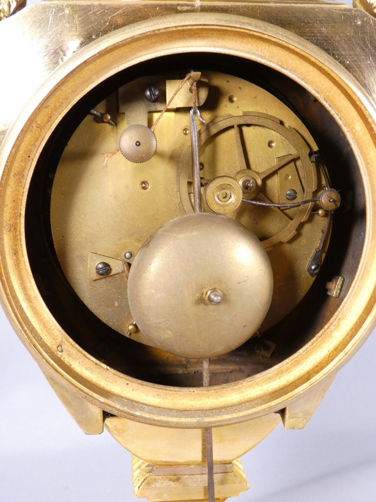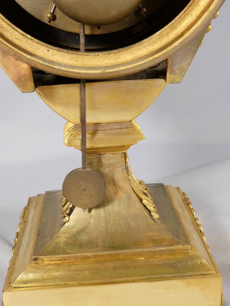 Pendule Empire en bronze doré forme vase ou écusson, Verdier Isle St Louis, époque 1810-1815