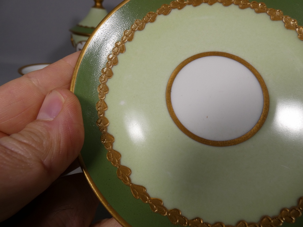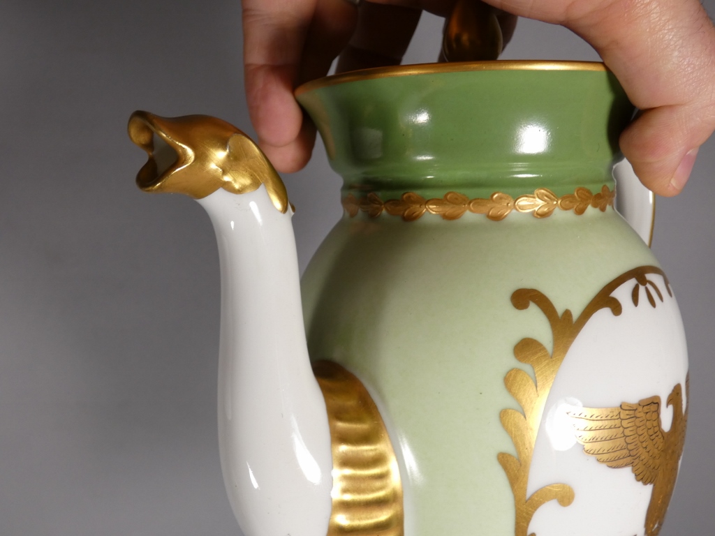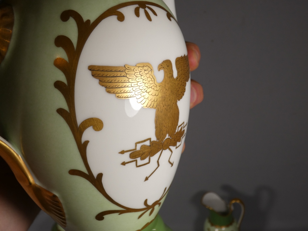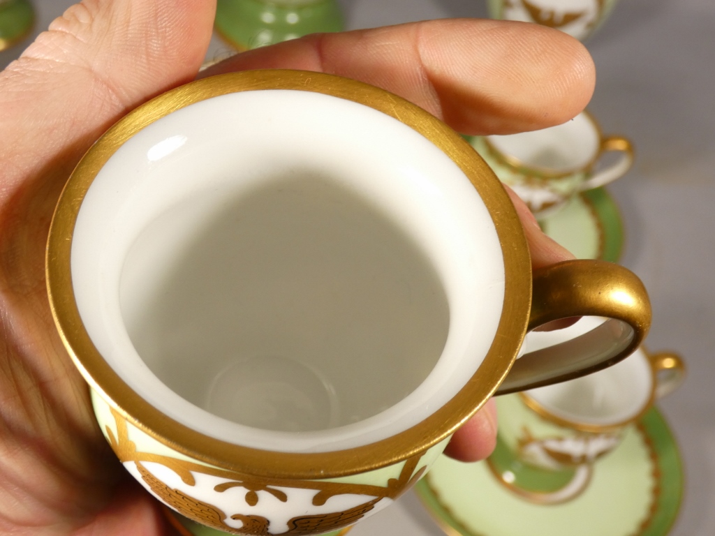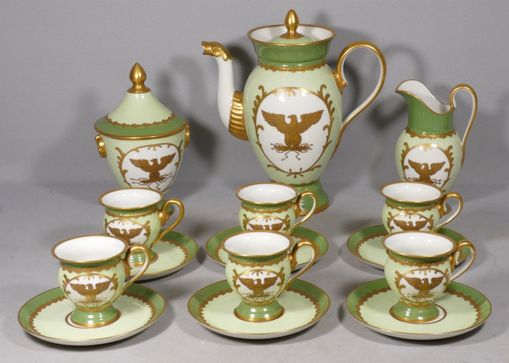 De style Empire, ce service est orné de l’aigle impérial doré en réserve blanc sur fond vert clair.