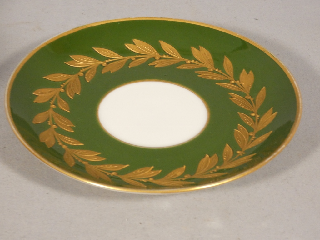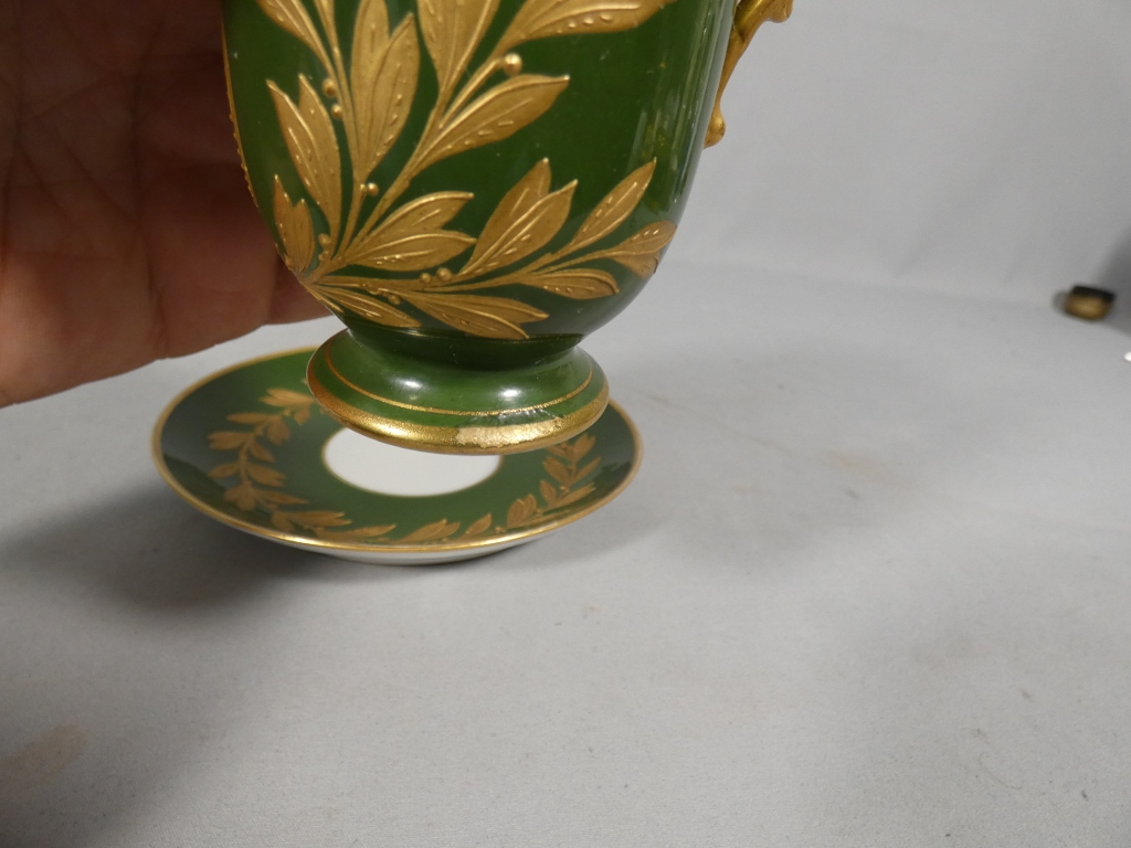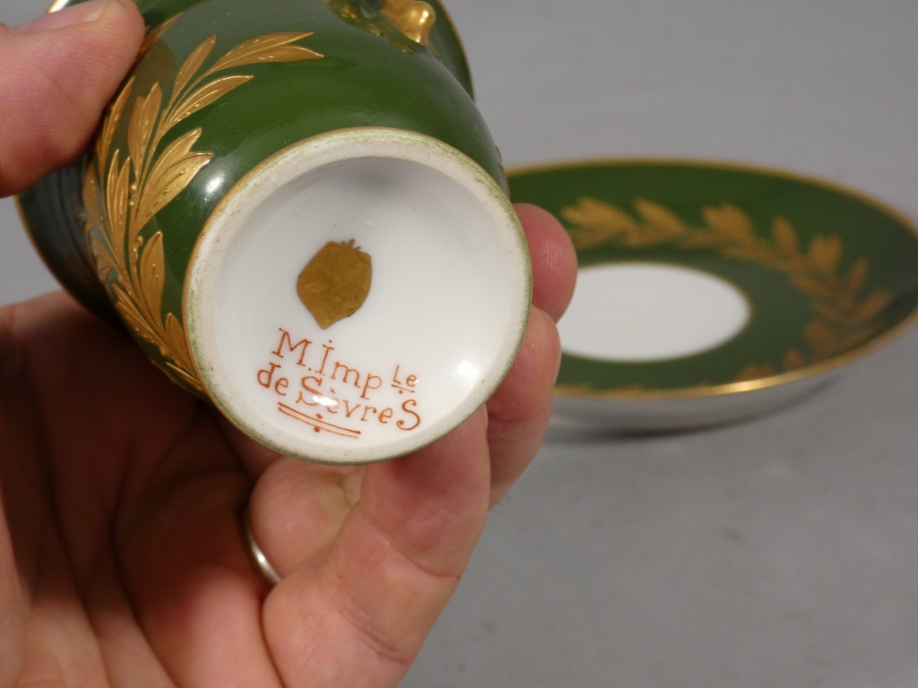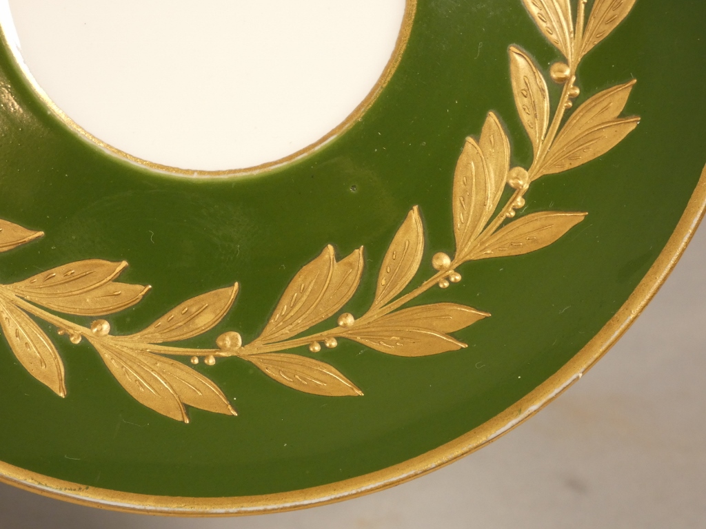 Tasse de style Empire au N impérial en porcelaine verte et doré, époque XIX ème