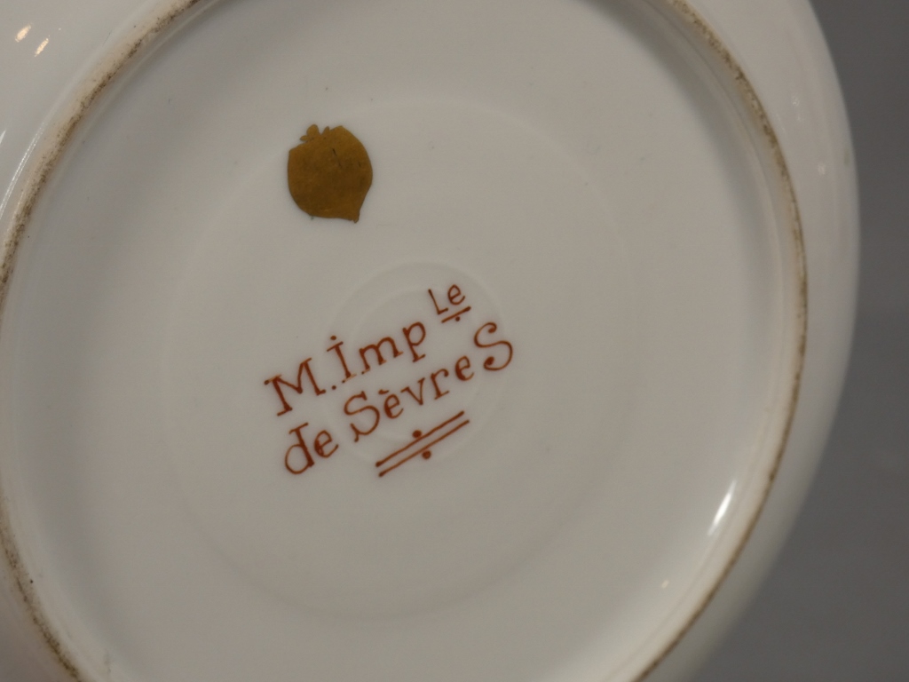 En dessous fausse marque de Sèvres » Manufacture Impériale de Sèvres » très certainement apposée sur une porcelaine de Limoges fin XIX ème.