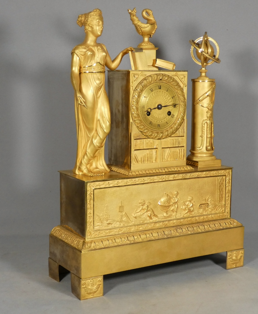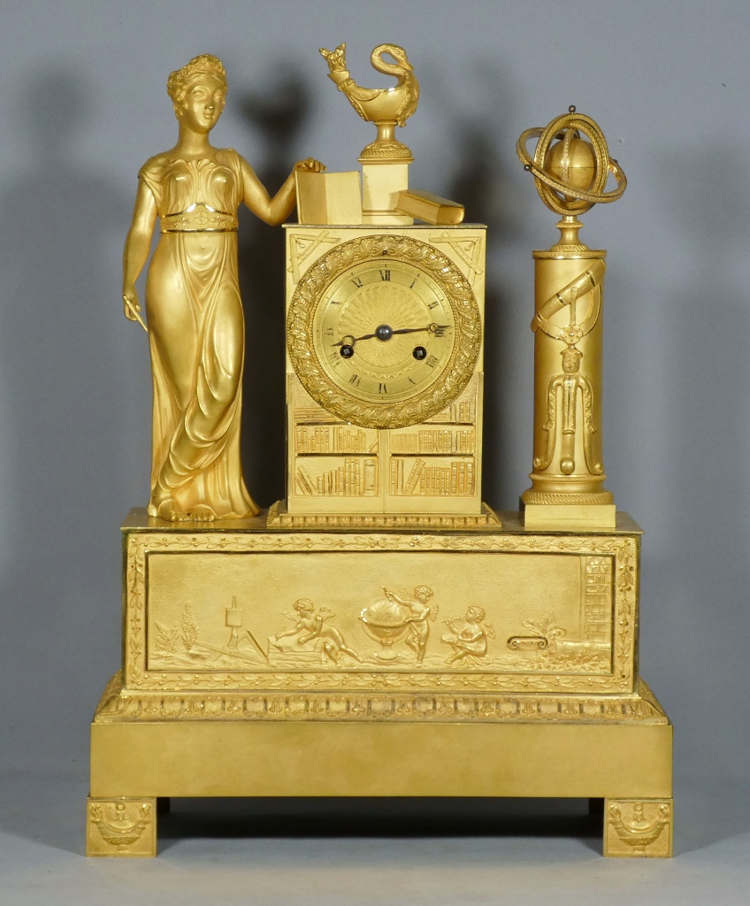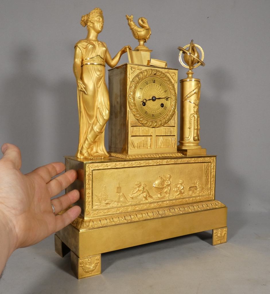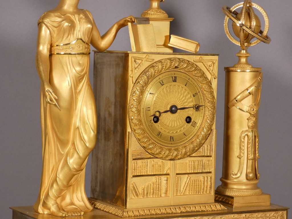 Uranie, Pendule Bronze Doré époque Empire à l’Allégorie De l’Astronomie Et De La Science, XIX