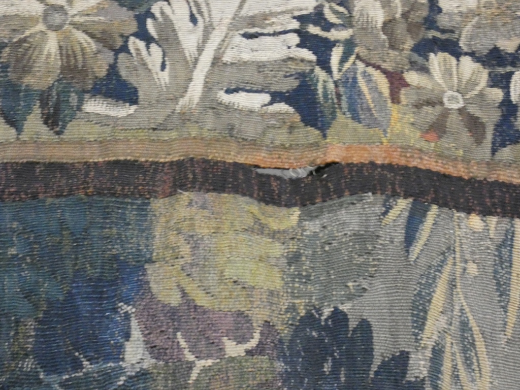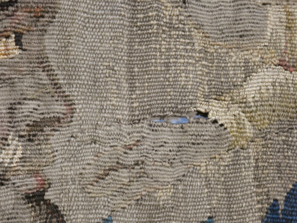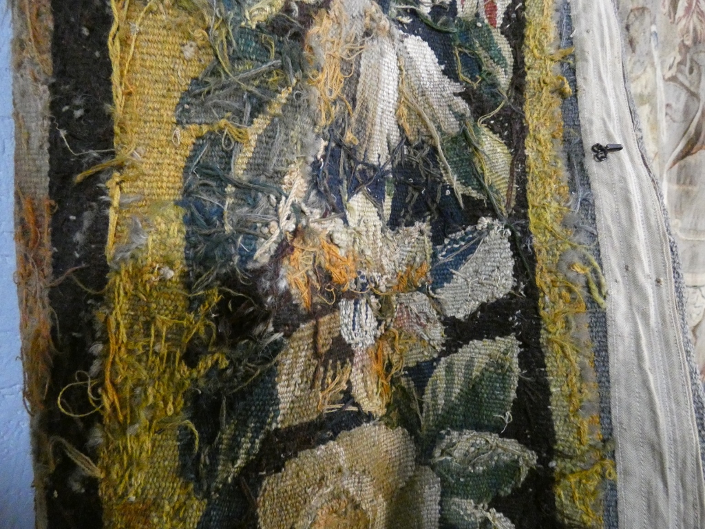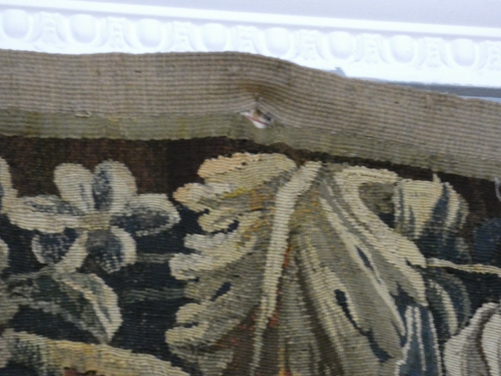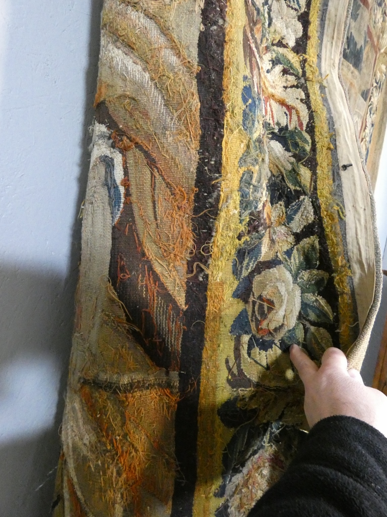 Cette tapisserie semble composée de différents éléments anciens rapiécés au fils des ans.
