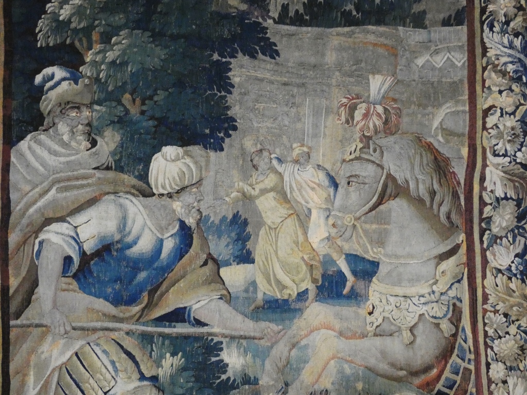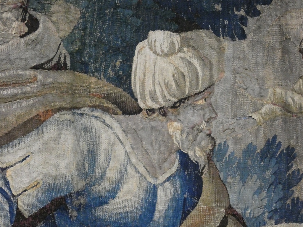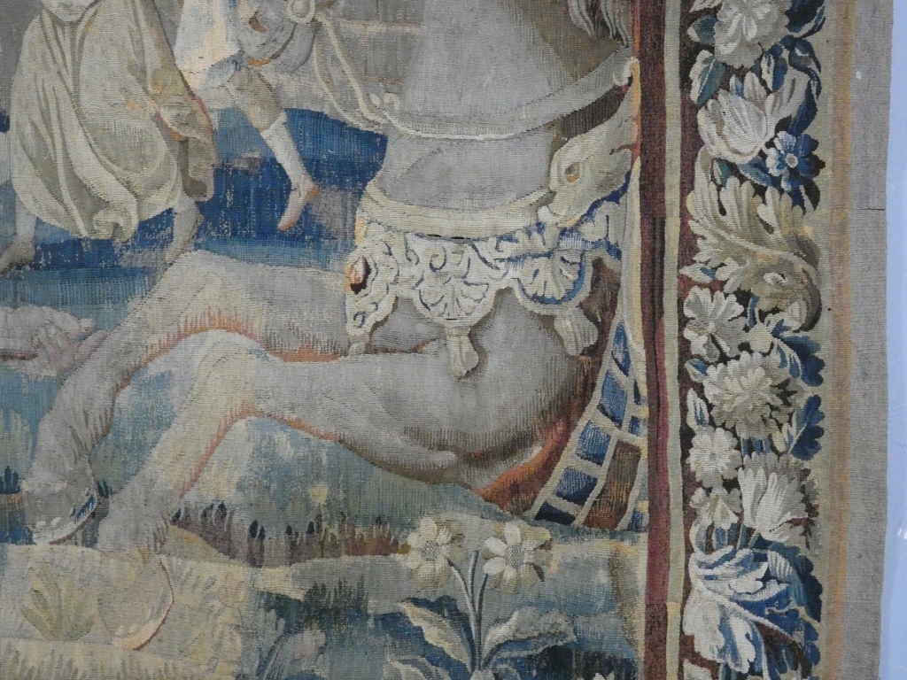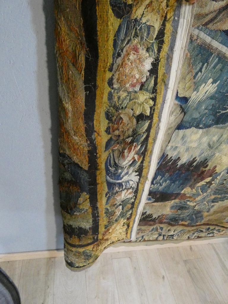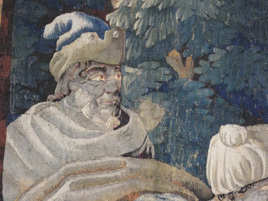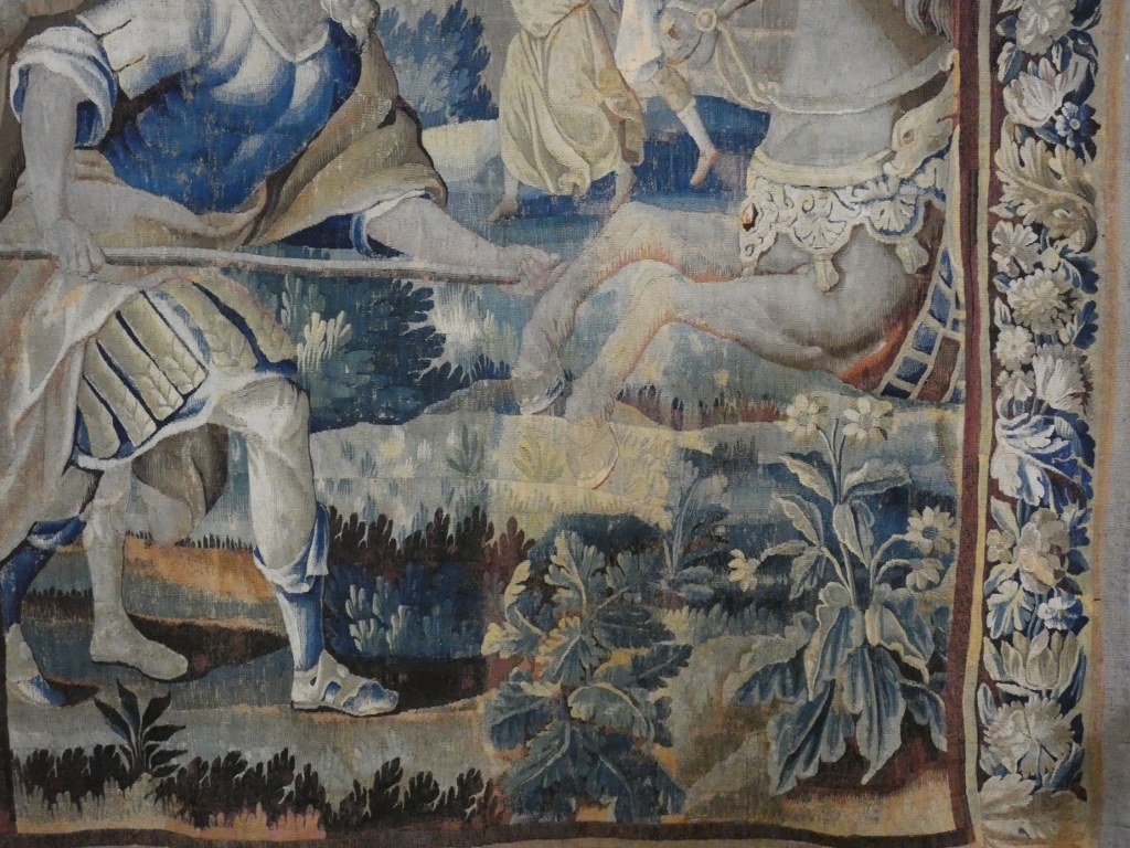 Cette tapisserie semble composée de différents éléments anciens rapiécés au fils des ans.