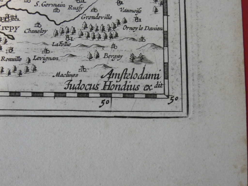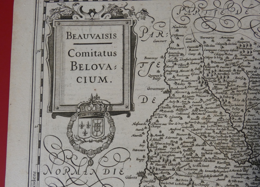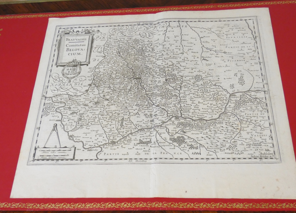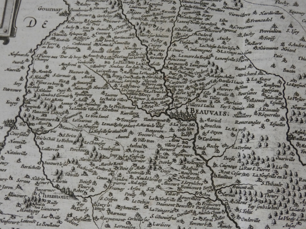 Carte géographique du Beauvaisis Picardie d’époque XVII ème siècle gravée par Jodocus Hondius