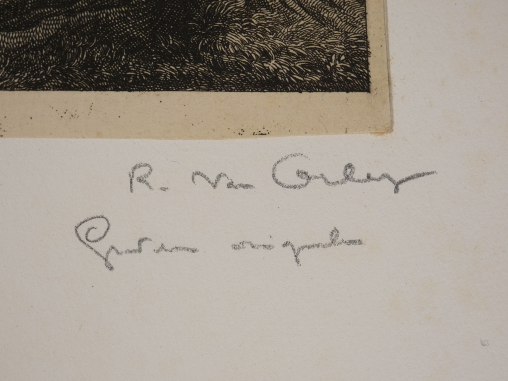 Hauteur: gravure 25.5 cm, canson 49 cm