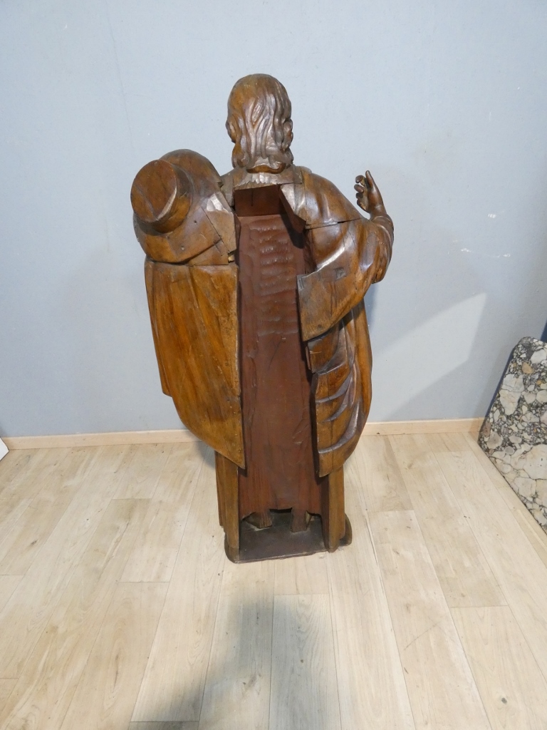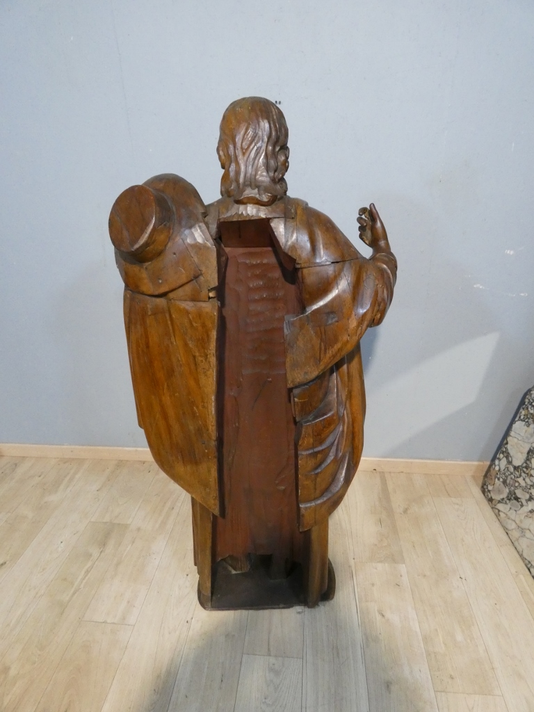 Saint Jacques le Majeur, statue 1.6 m de haut, sculpture en bois de chêne, époque XVIII ème