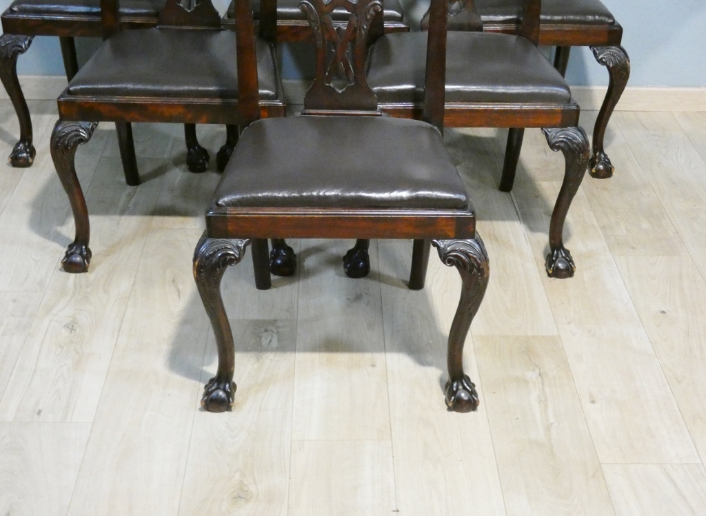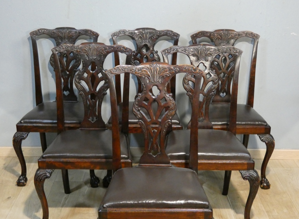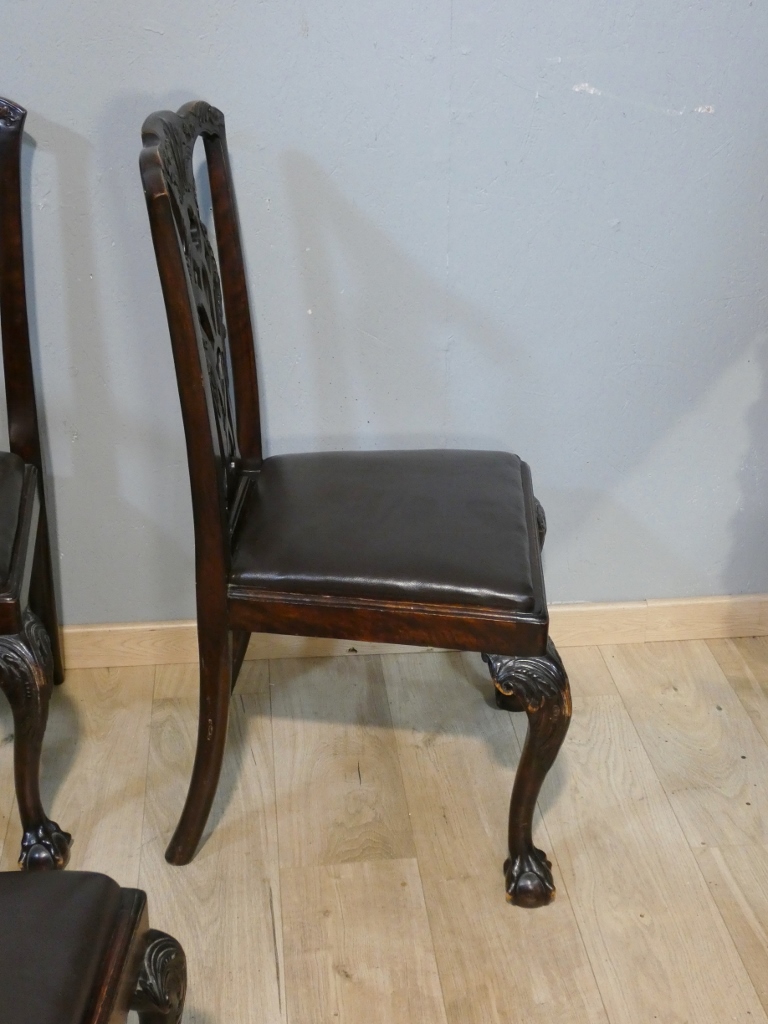 6 chaises anglaises Chippendale de salle à manger en acajou, époque début XX ème