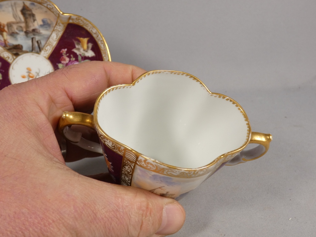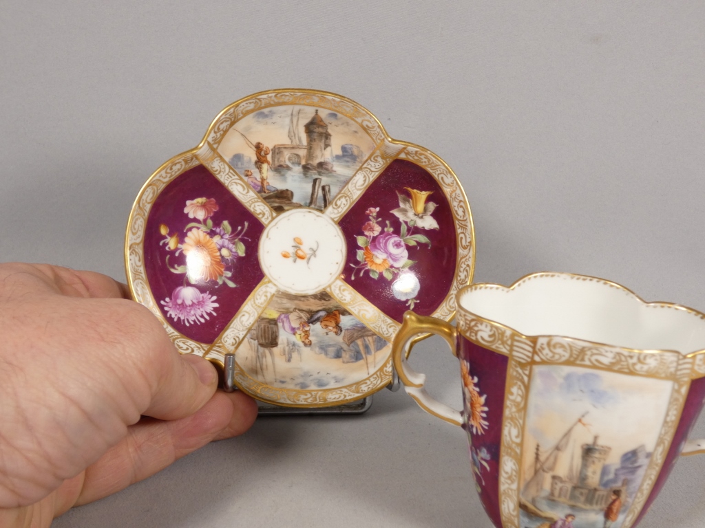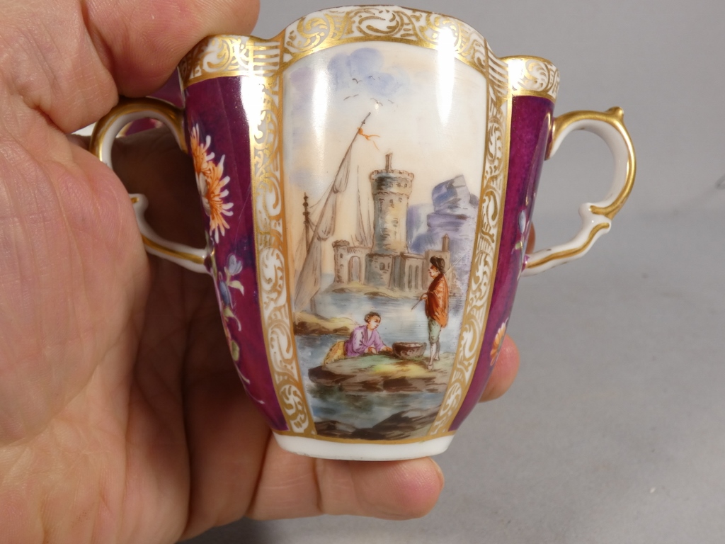 Augustus Rex, tasse à chocolat de collection peinte à la main porcelaine de Meissen, XIX ème
