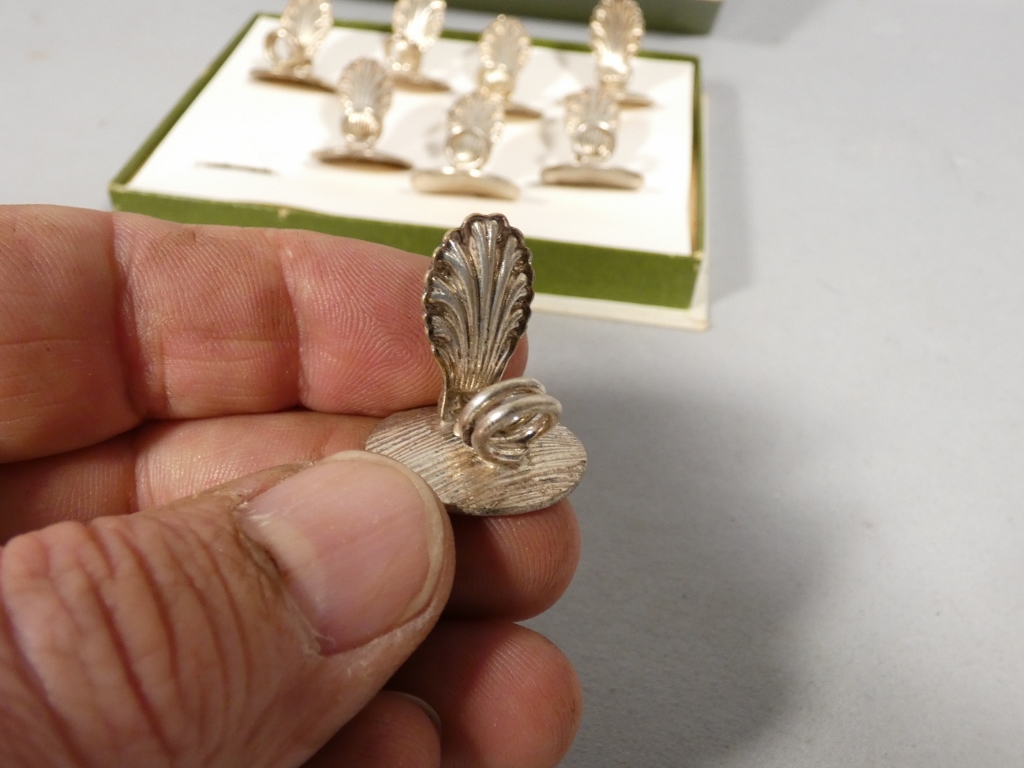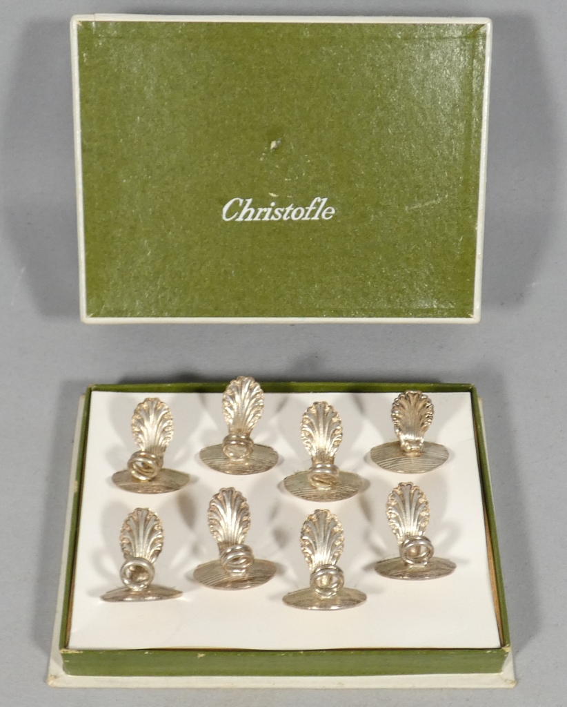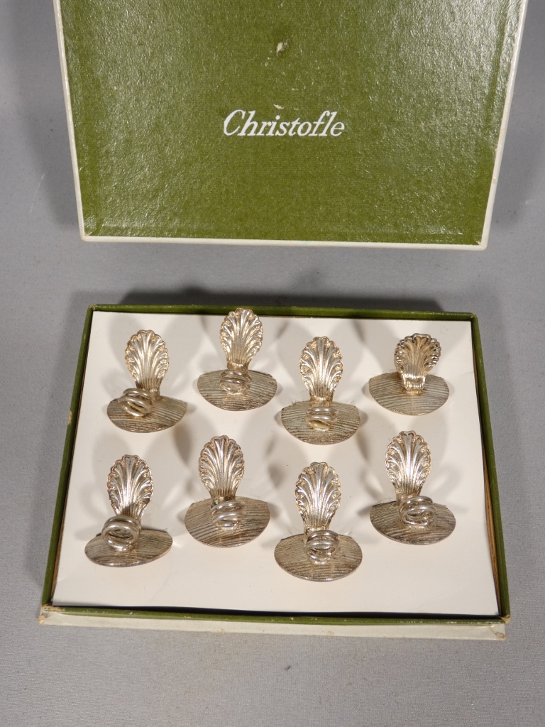 8 porte menus ou porte noms en métal argenté de la maison Christofle, modèle Coquille.