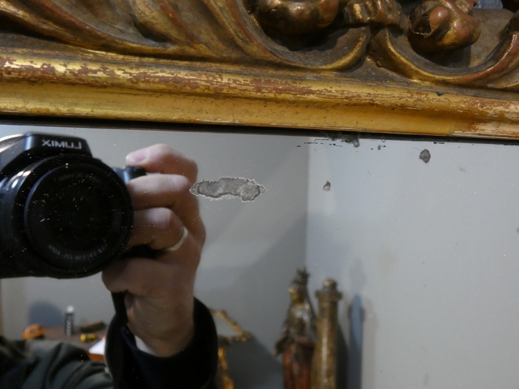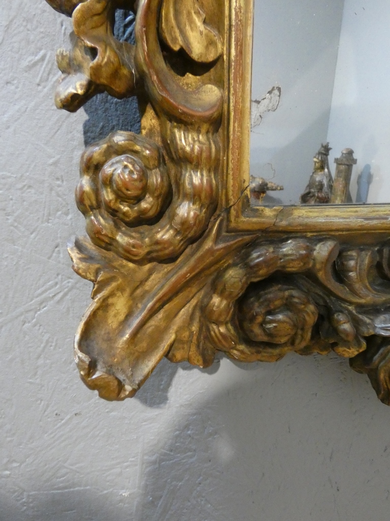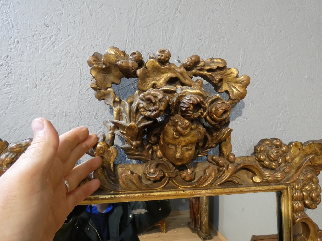Quelques manques de bois et de dorure mais miroir dégageant un charme certain et un haut pourvoir décoratif.