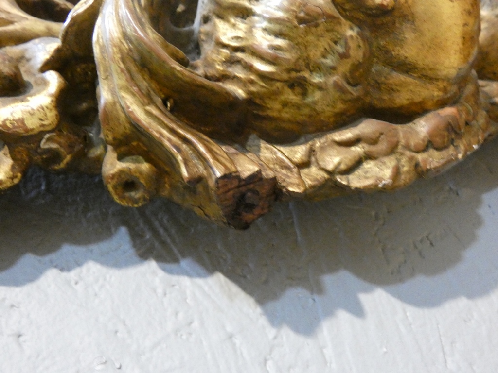 Dorure à la feuille et à la patine.