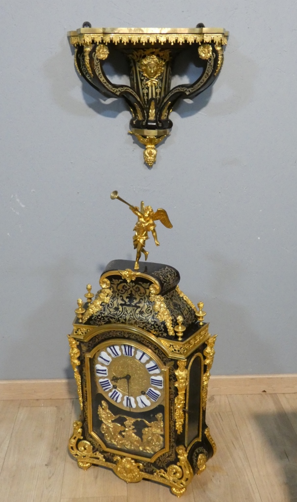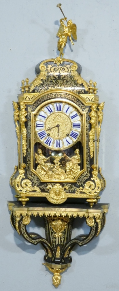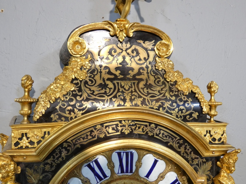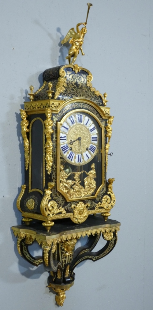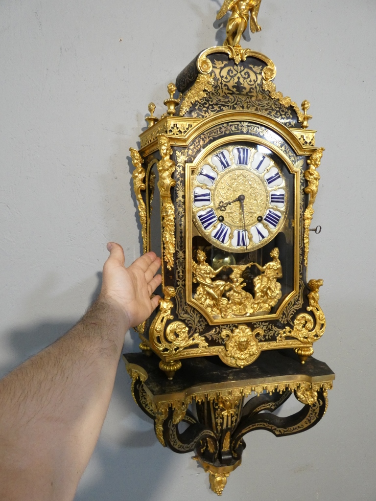 Pendule en cartel d’époque Louis XIV en marqueterie Boulle, horloger Masson à Paris, XVIII ème