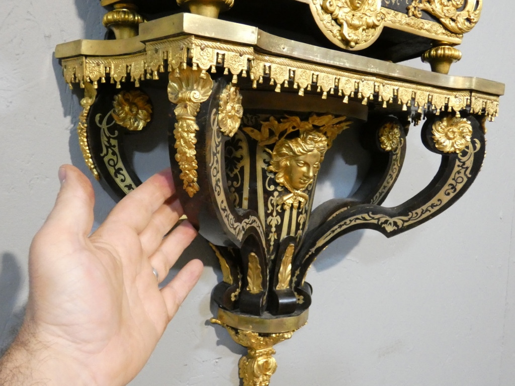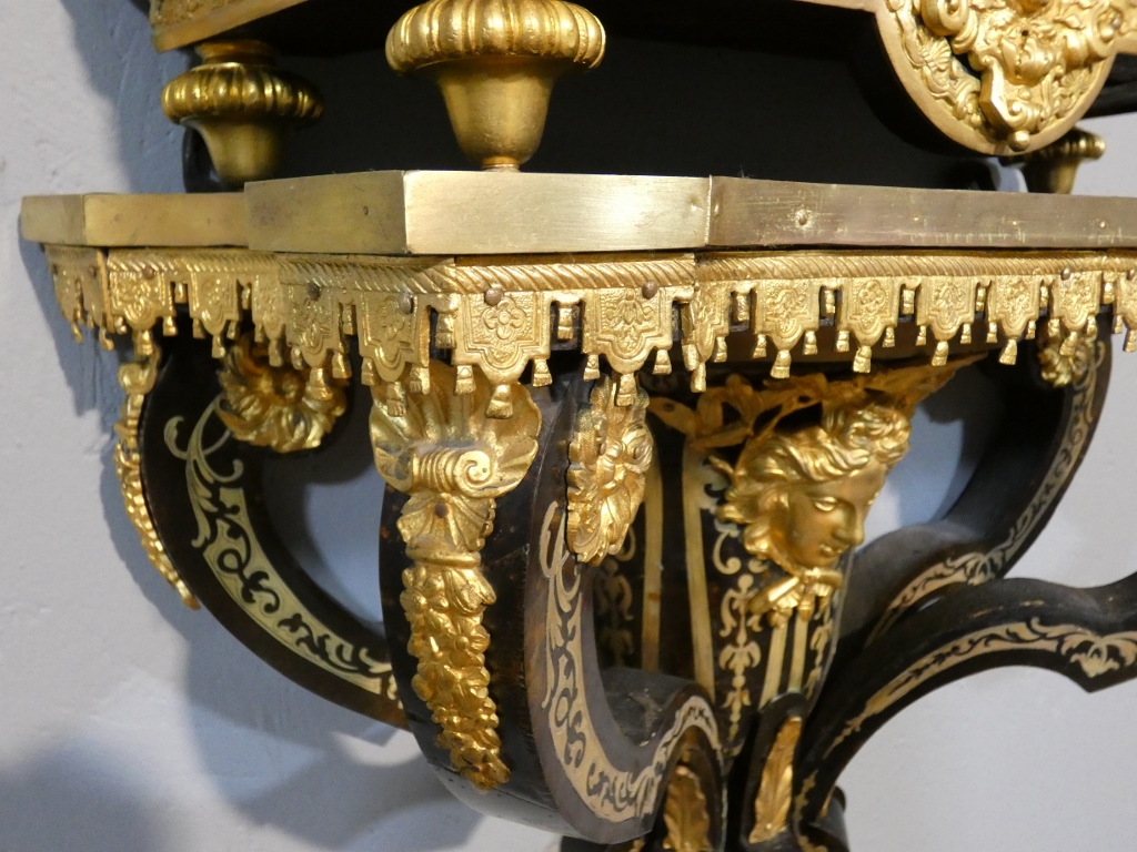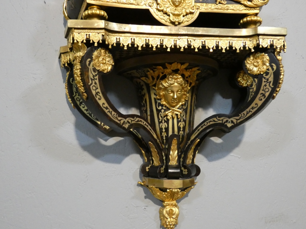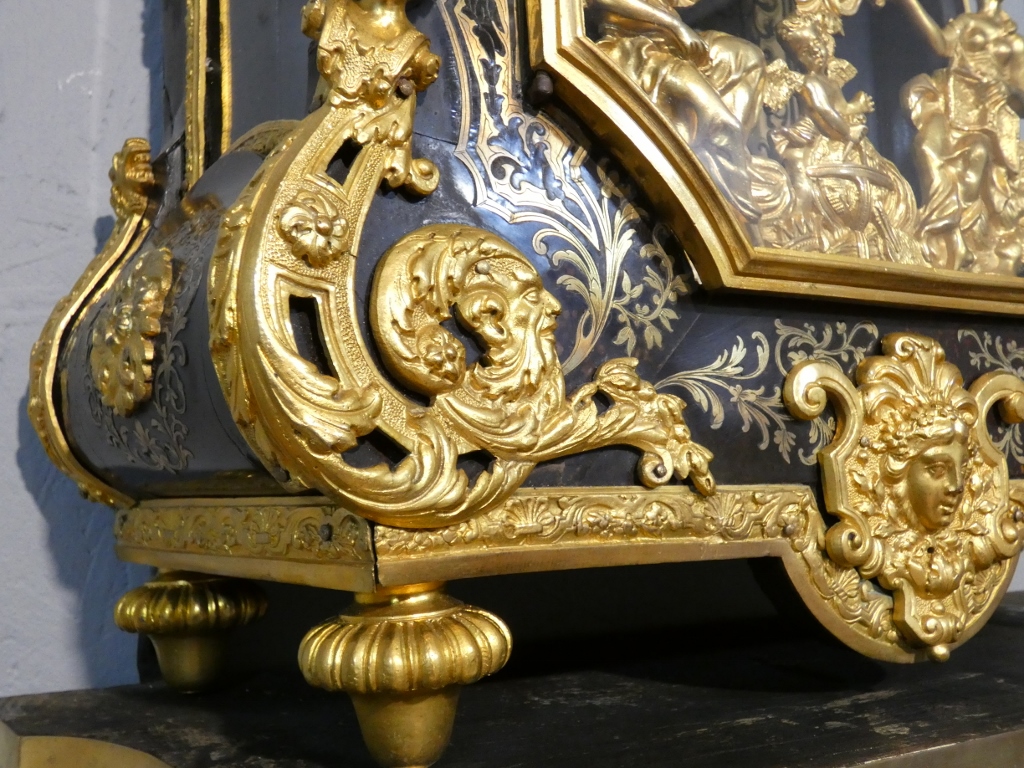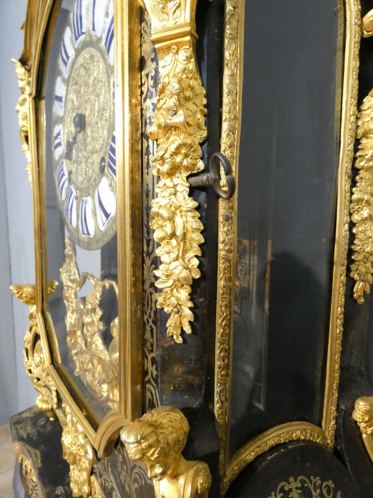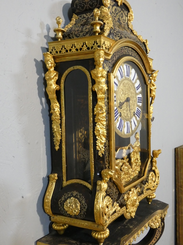 Magnifique et rare pendule en cartel d’époque Louis XIV en bois de palissandre et marqueterie Boulle.