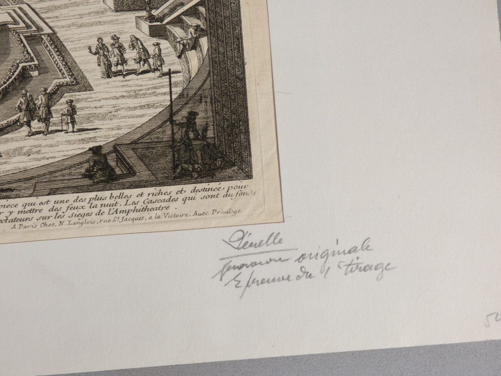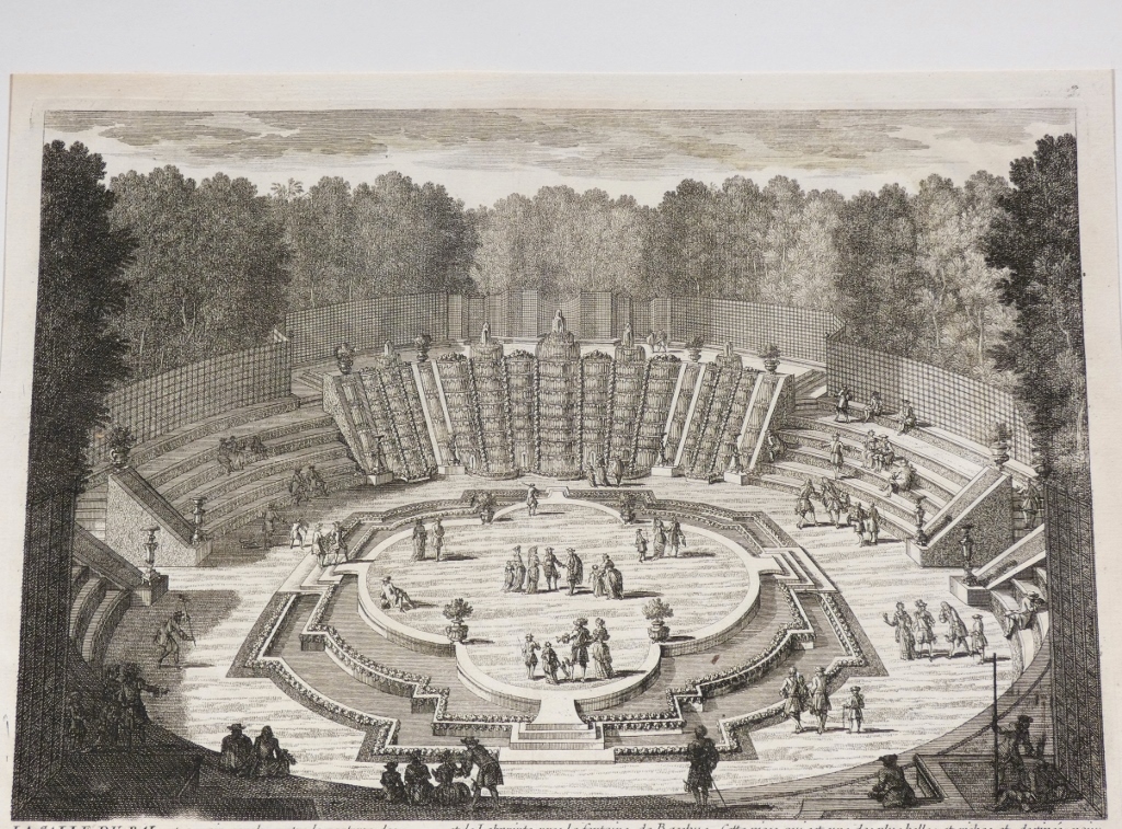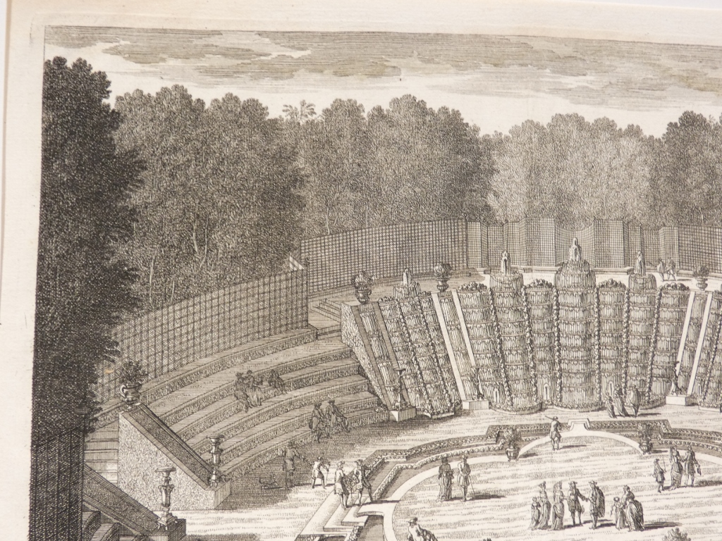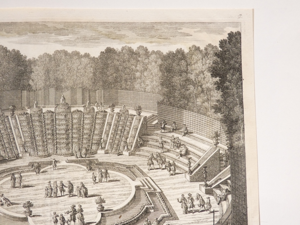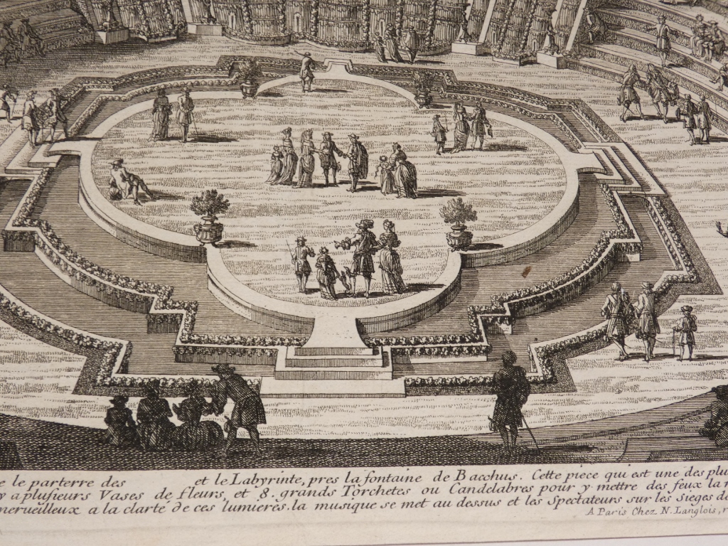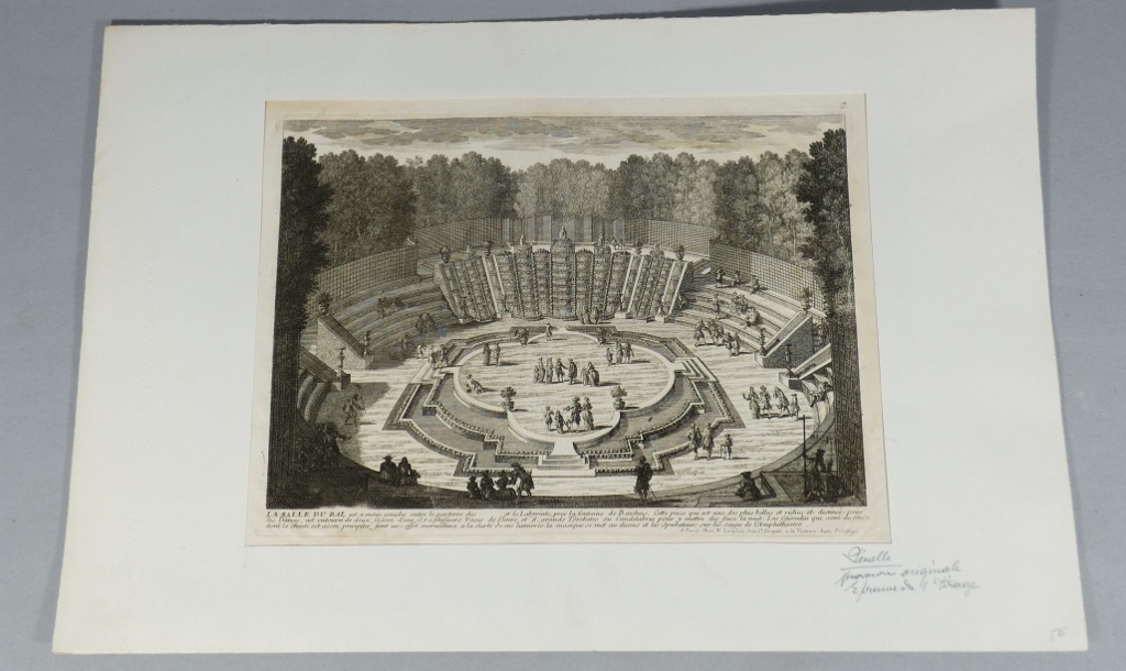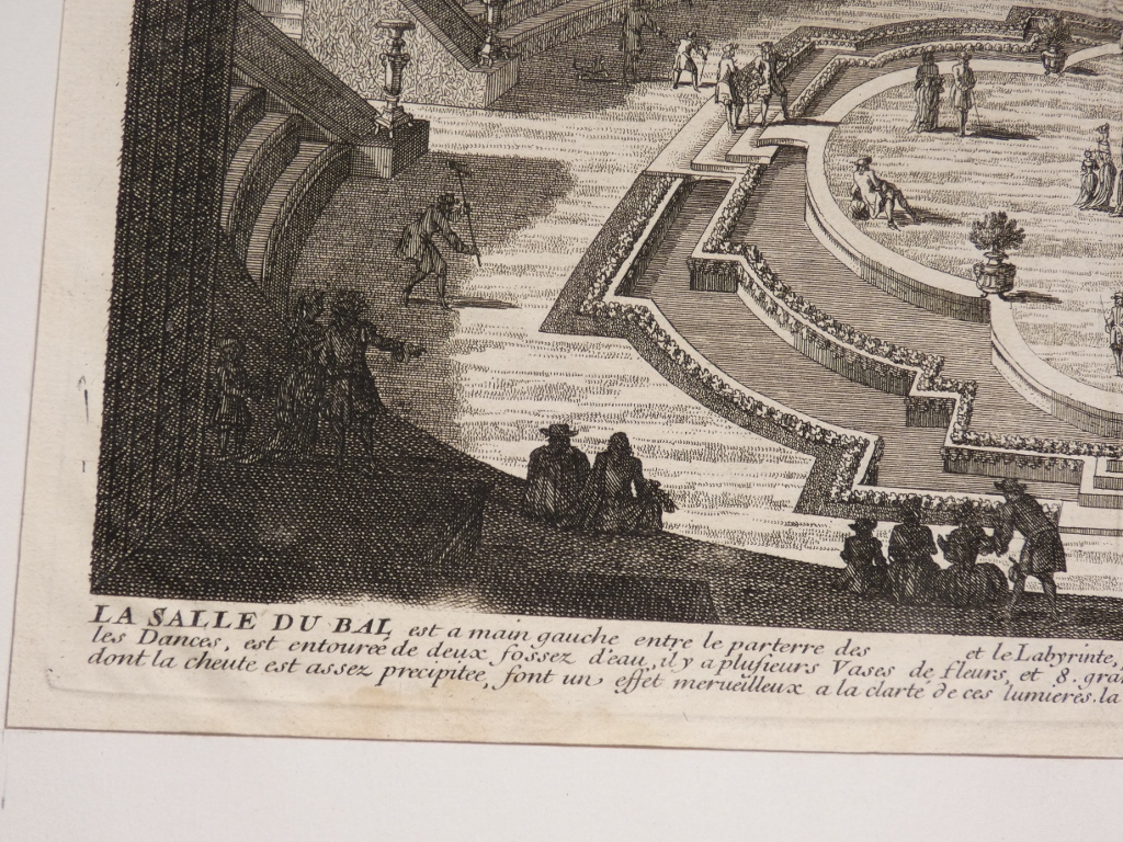 Versailles, La salle du Bal, gravure d’époque XVII ème des jardins par Gabriel Pérelle