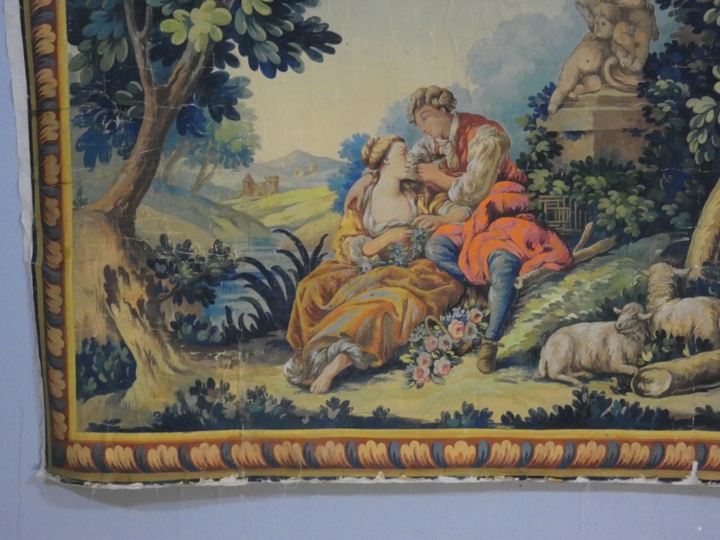 Grand carton d’Aubusson, scène galante pastorale d’après François Boucher, époque XIX ème