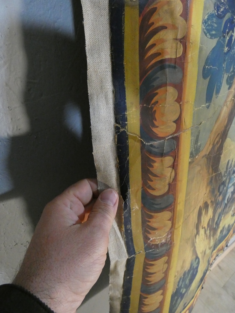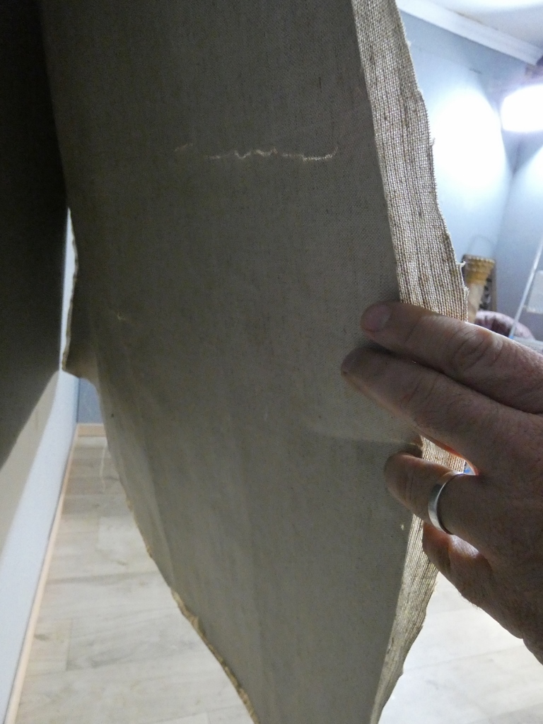 Ce carton a été doublé par une toile qui lui permet d’être relativement rigide.