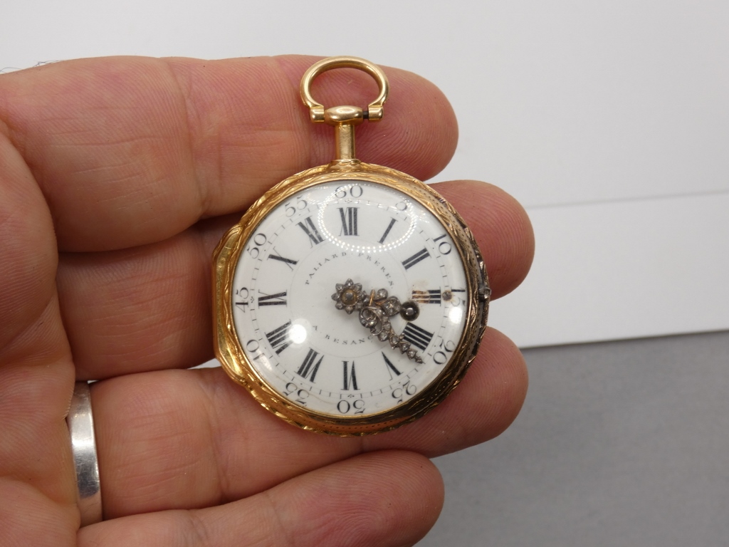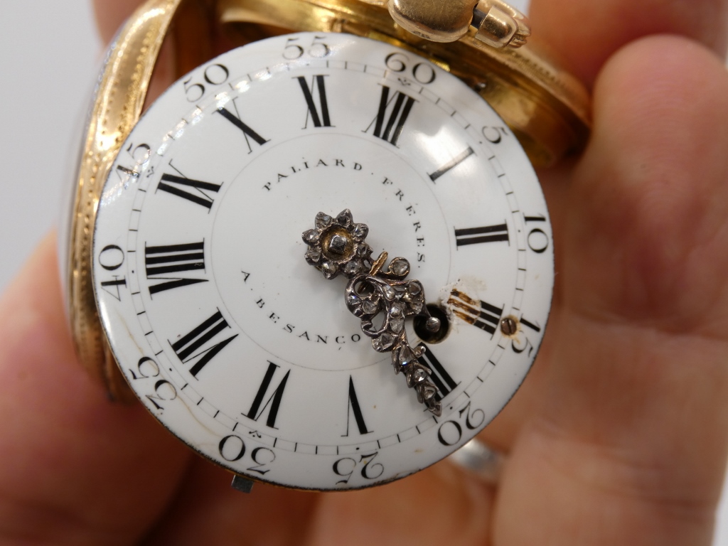 Paliard Besançon montre à coq en or massif, époque XVIII ème, C couronné