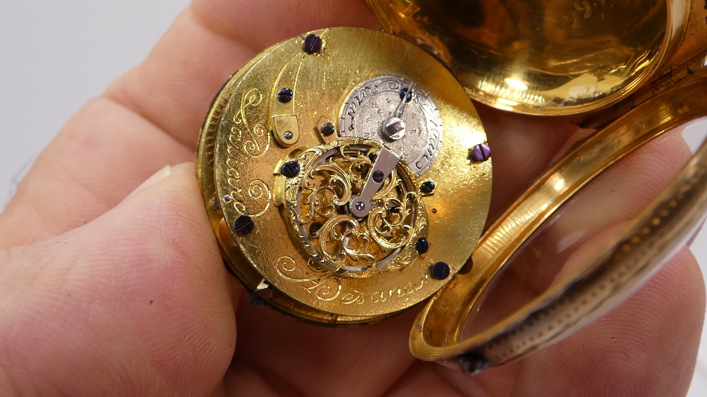 Très belle montre de gousset en or massif d’époque XVIII ème siècle.