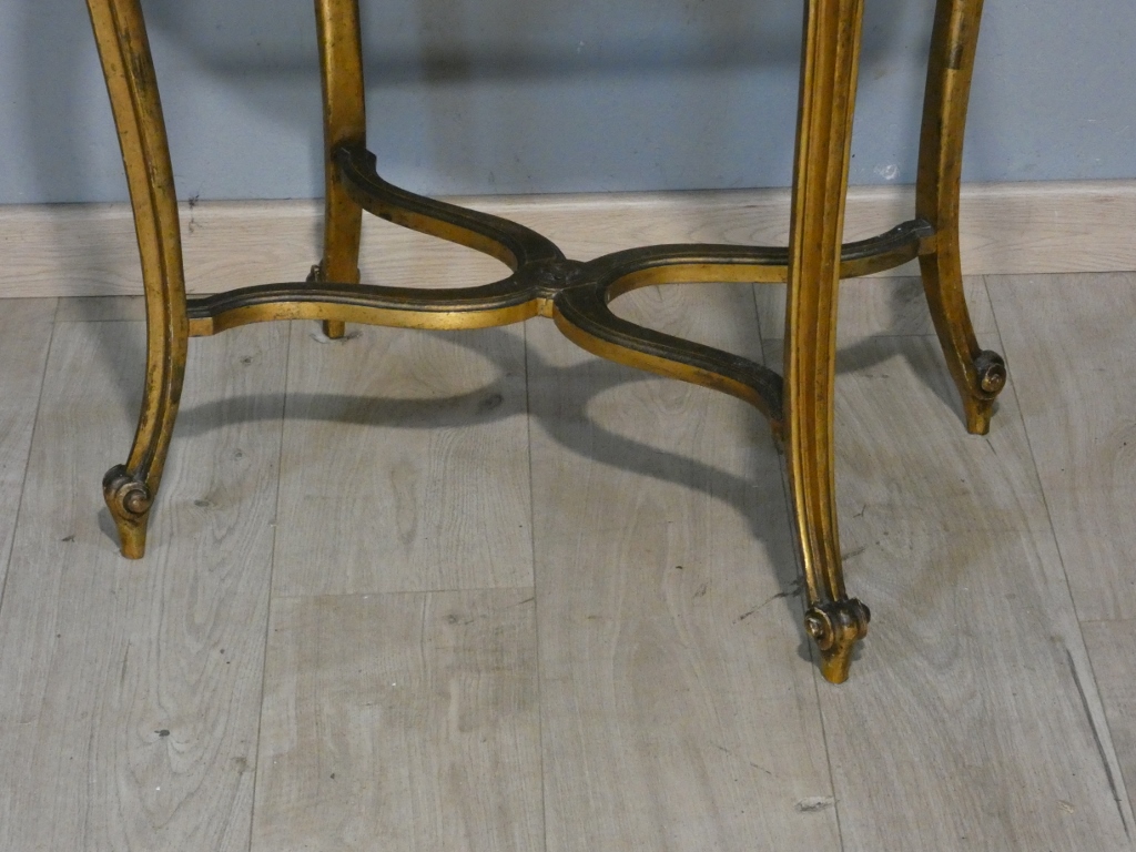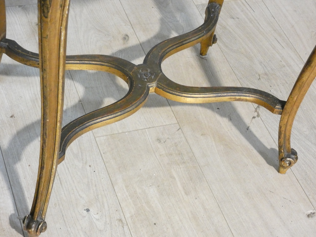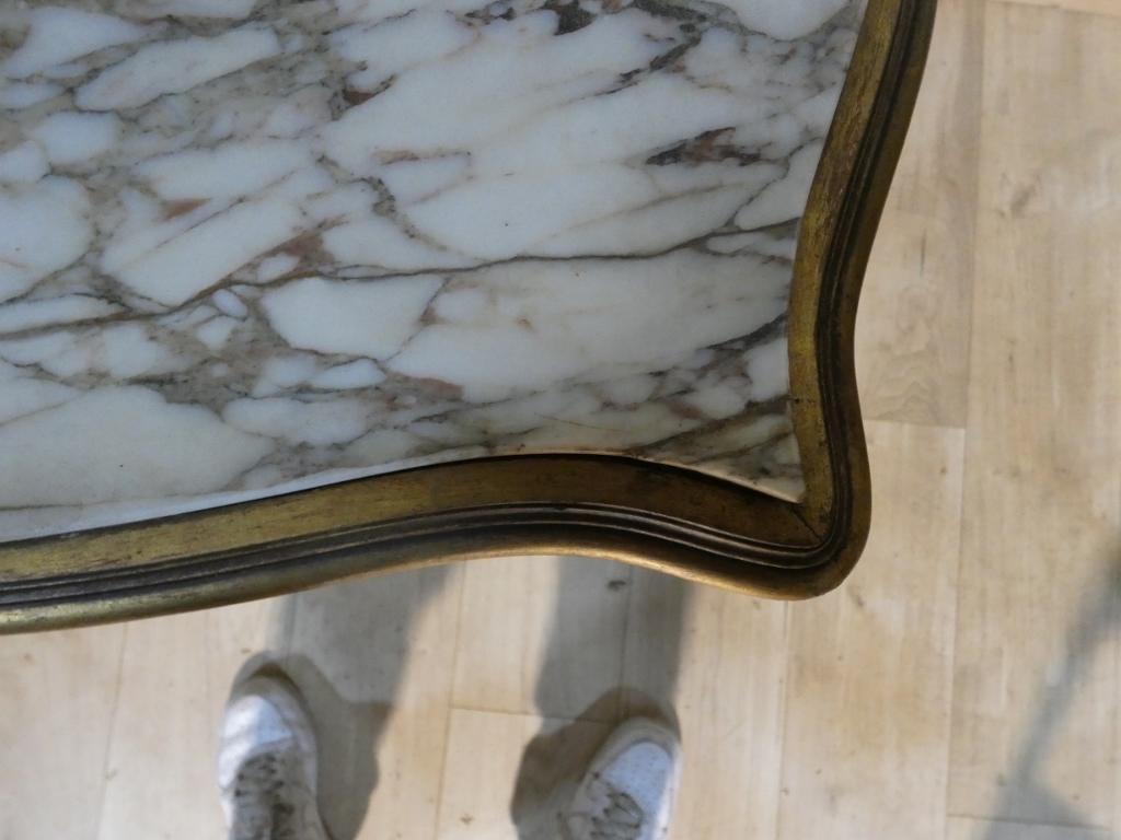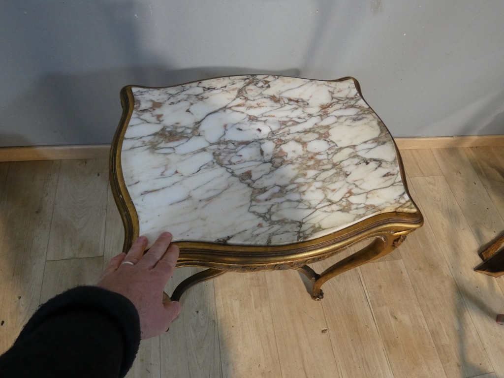 Table de milieu, guéridon de style Louis XV en bois doré et marbre, époque 1900