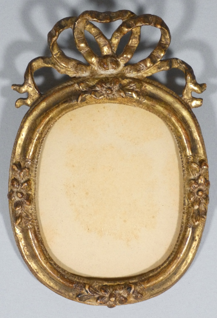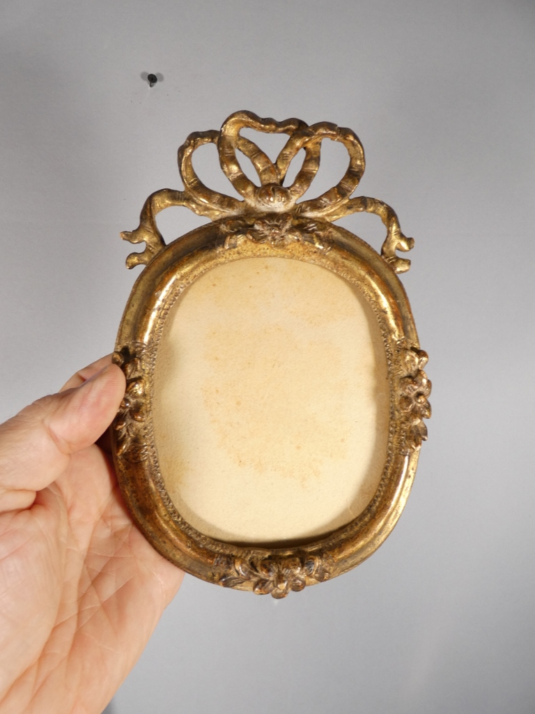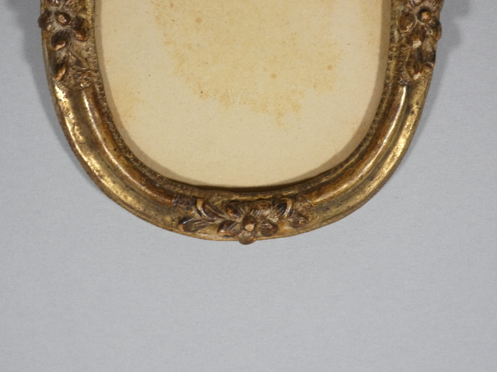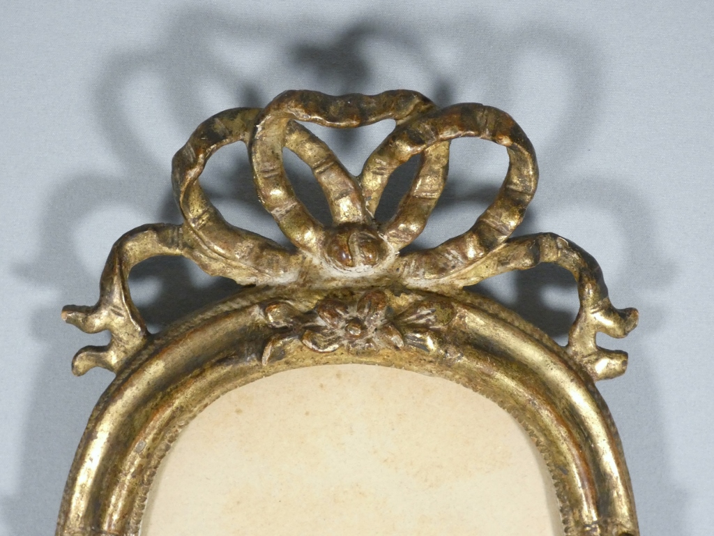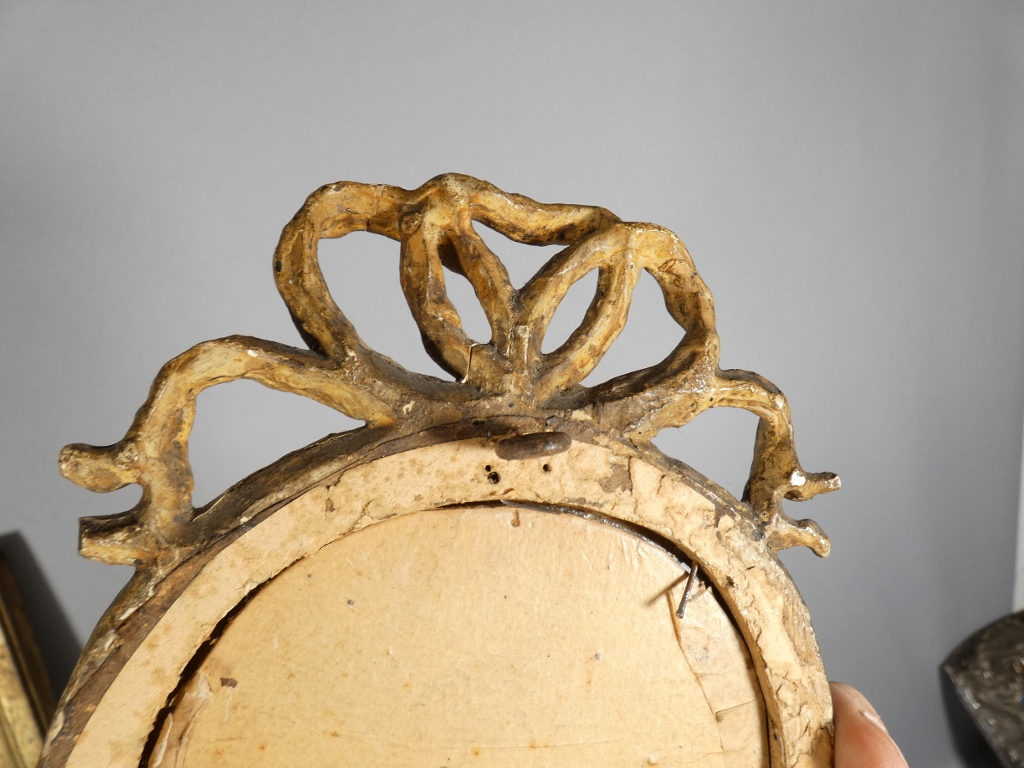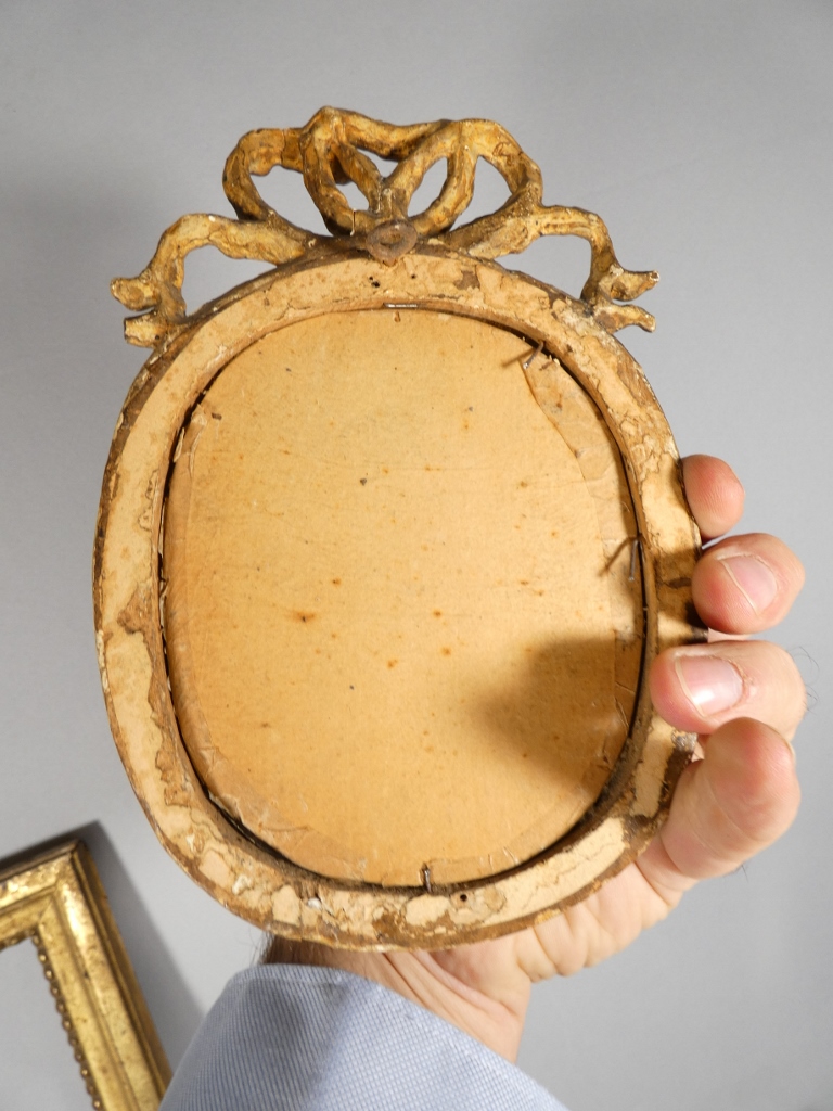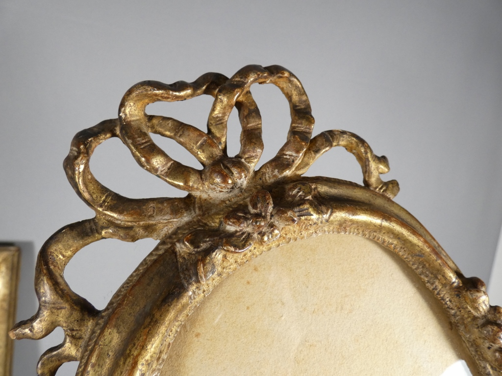 Ravissant cadre ovale en bois sculpté et doré d’époque Louis XVI.