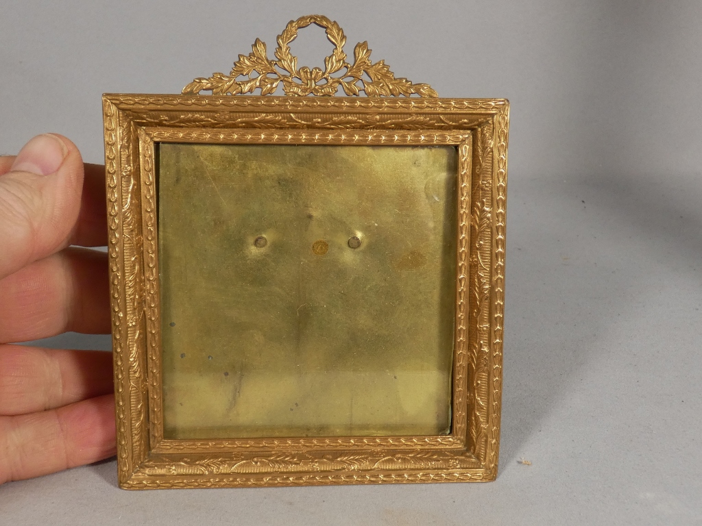 Cadre photo carré de style Louis XVI en laiton doré, époque 1900