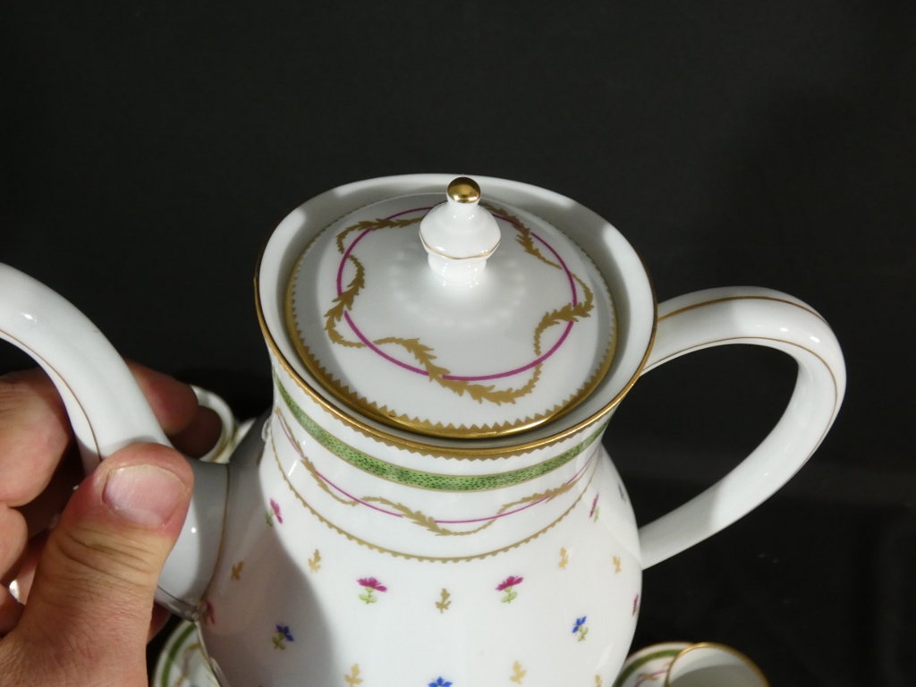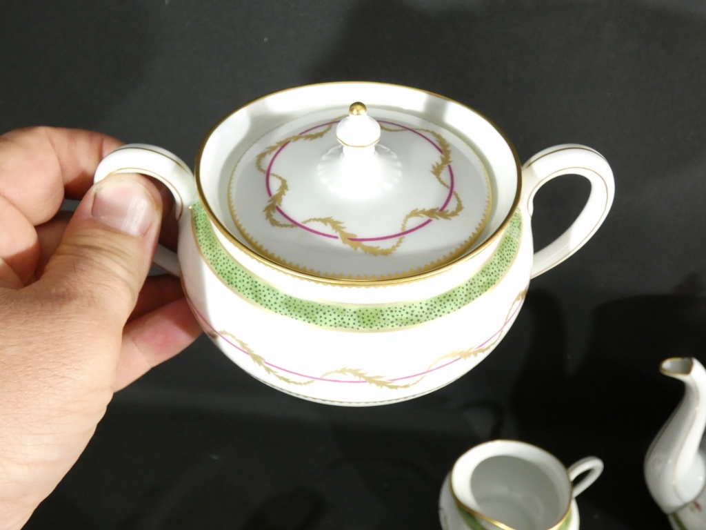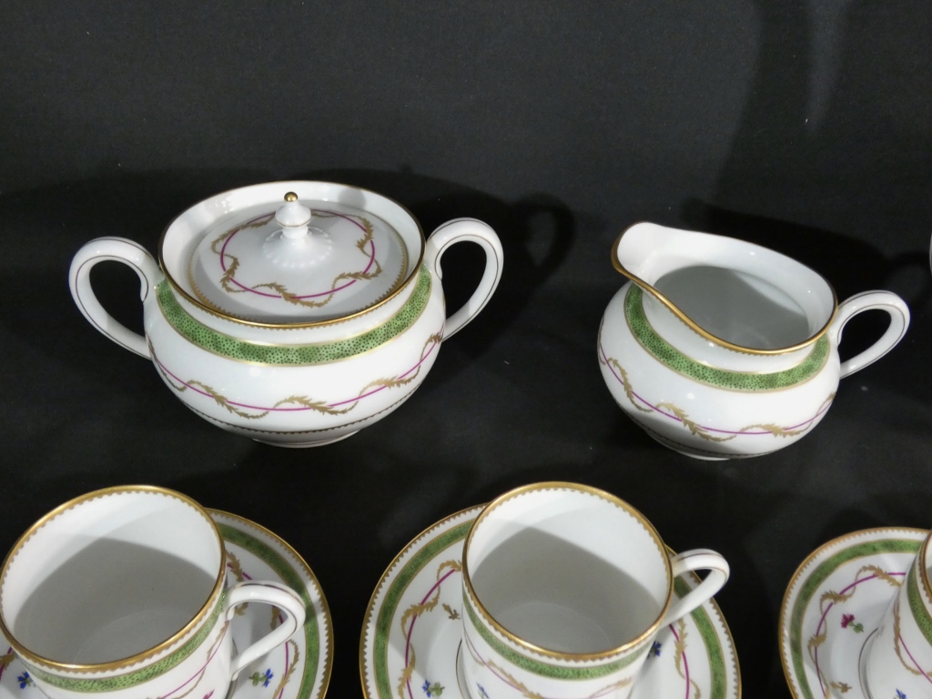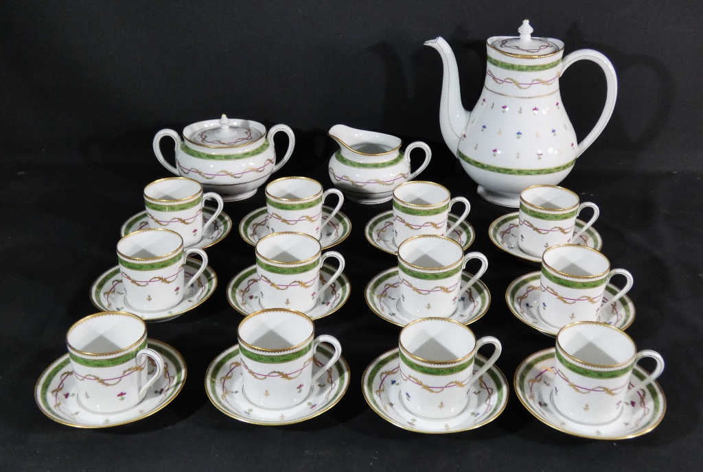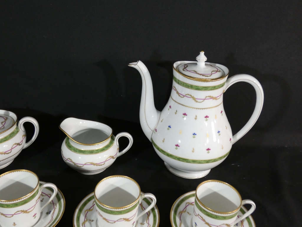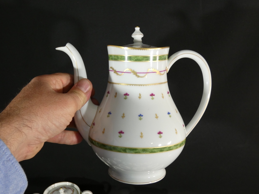Ravissant service à café en porcelaine de Limoges, manufacture Haviland modèle Vieux Paris vert.