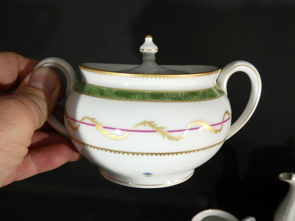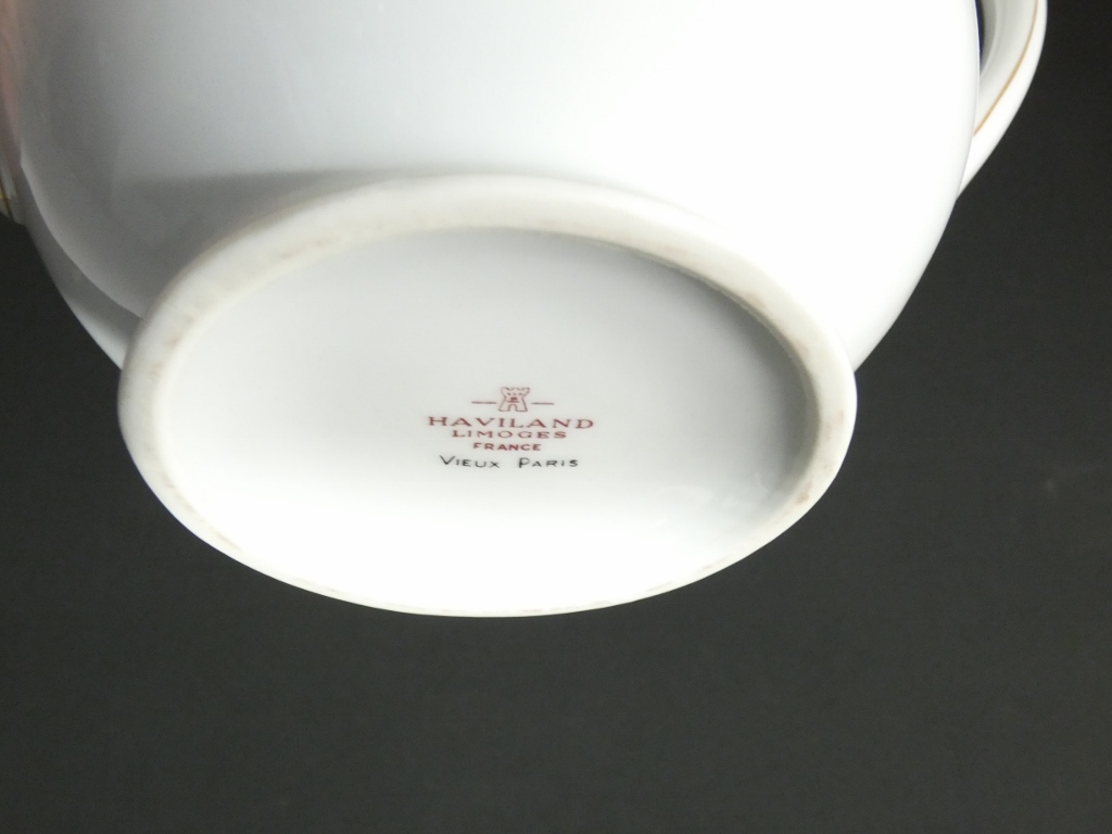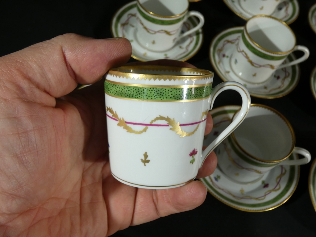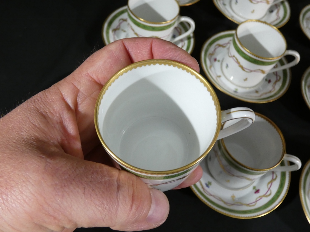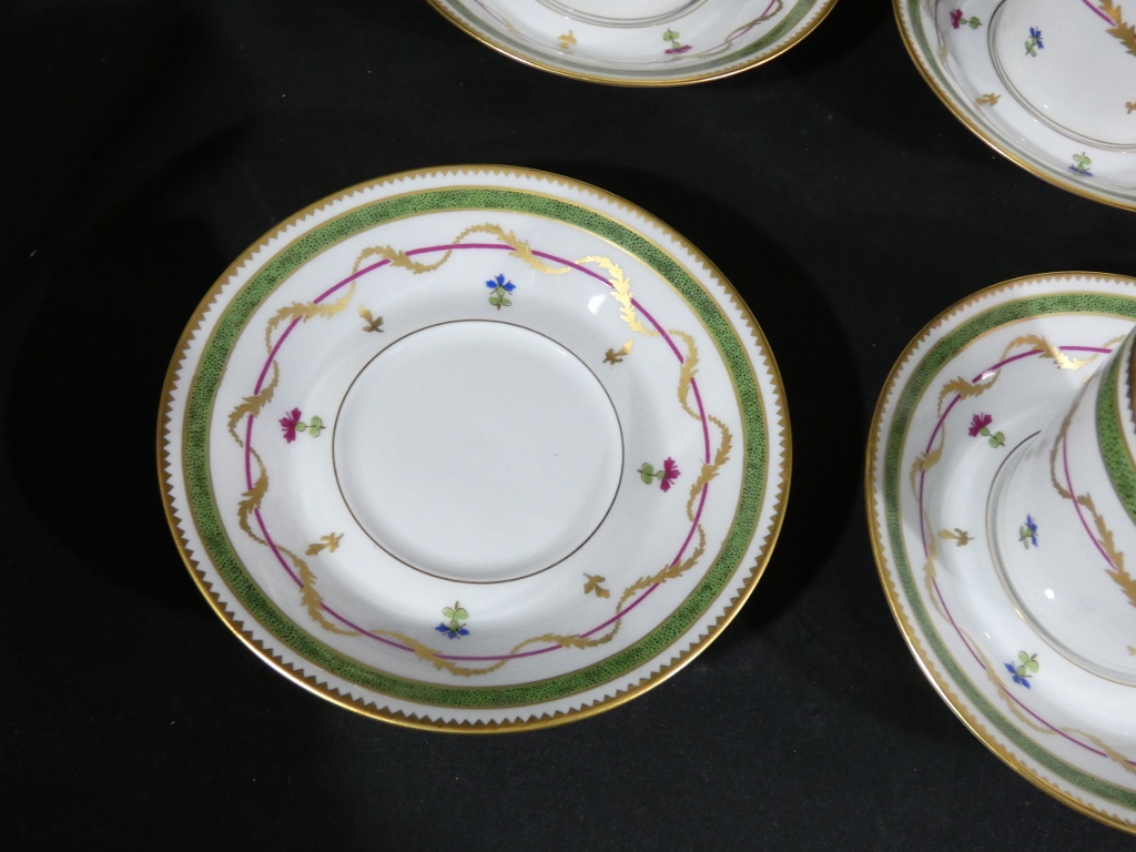 Ravissant service à café en porcelaine de Limoges, manufacture Haviland modèle Vieux Paris vert.
