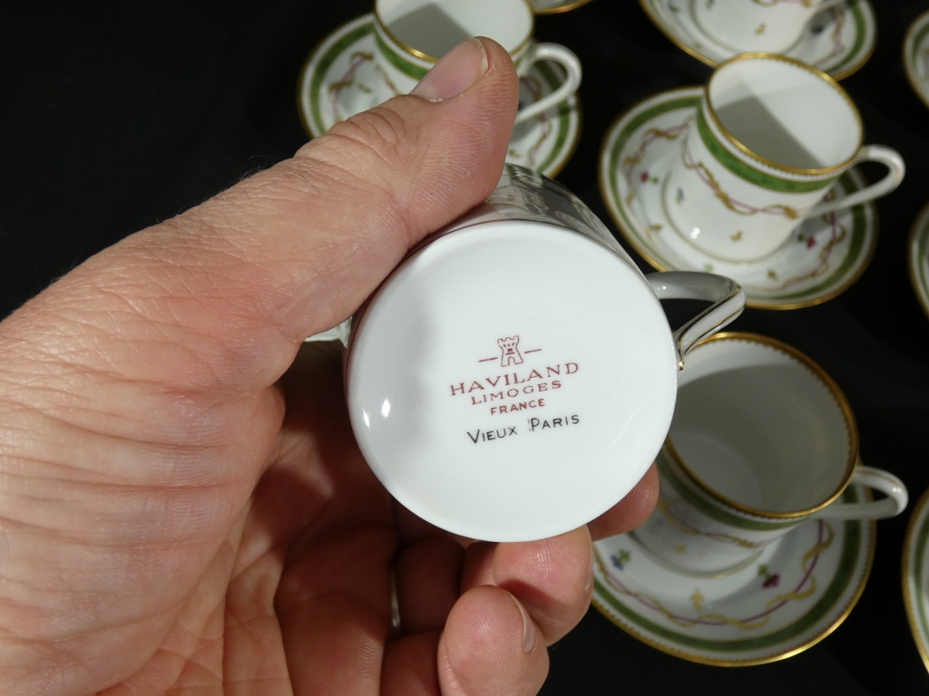 Haviland Vieux Paris vert, service à café pour 12 personnes, porcelaine Limoges