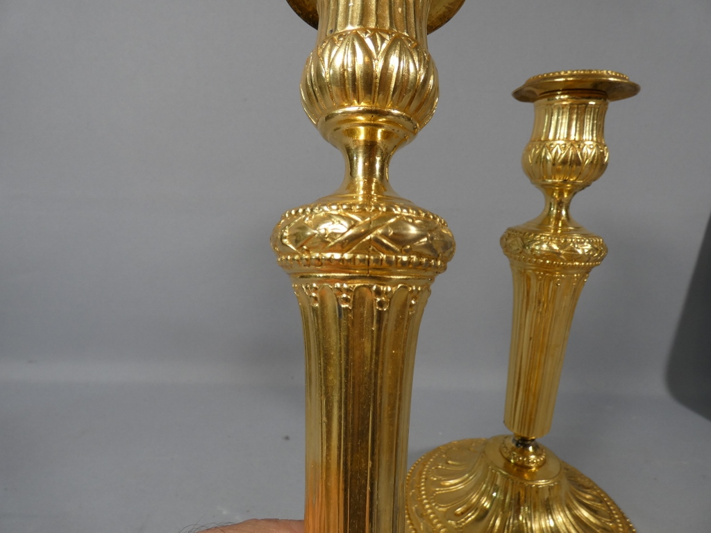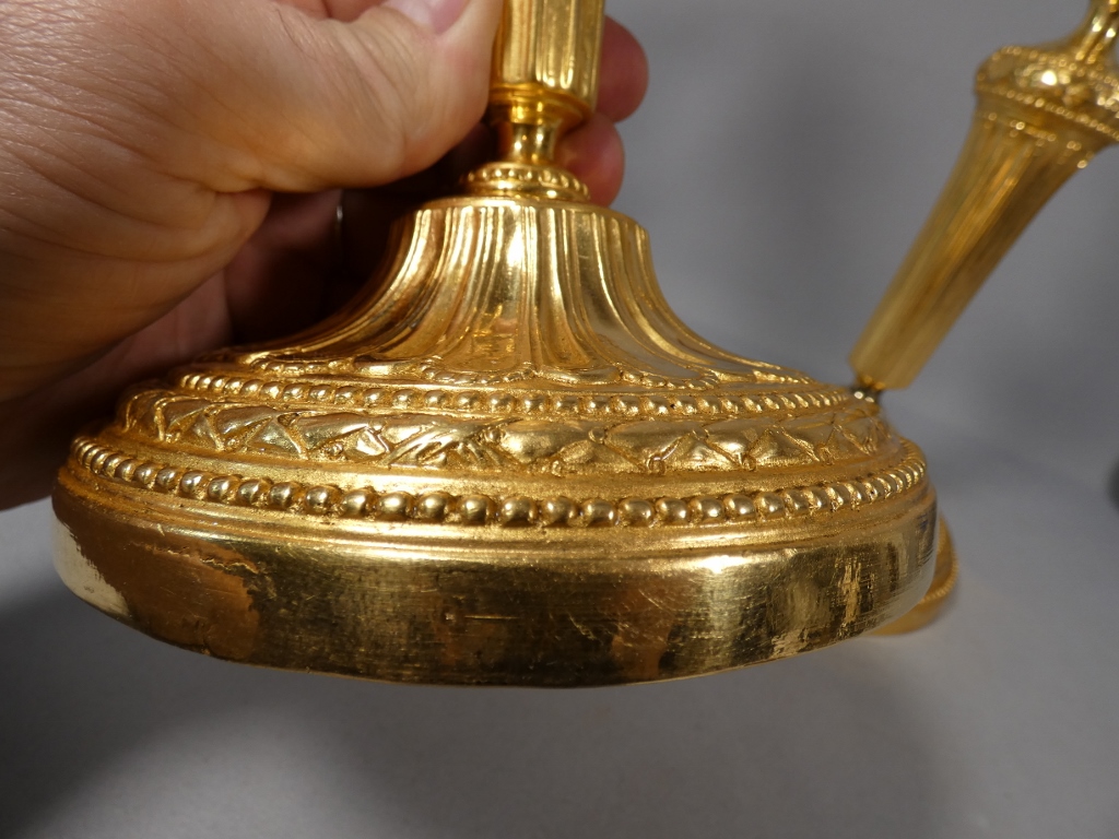 Paire de bougeoirs flambeaux Louis XVI en bronze doré, époque XVIII ème siècle